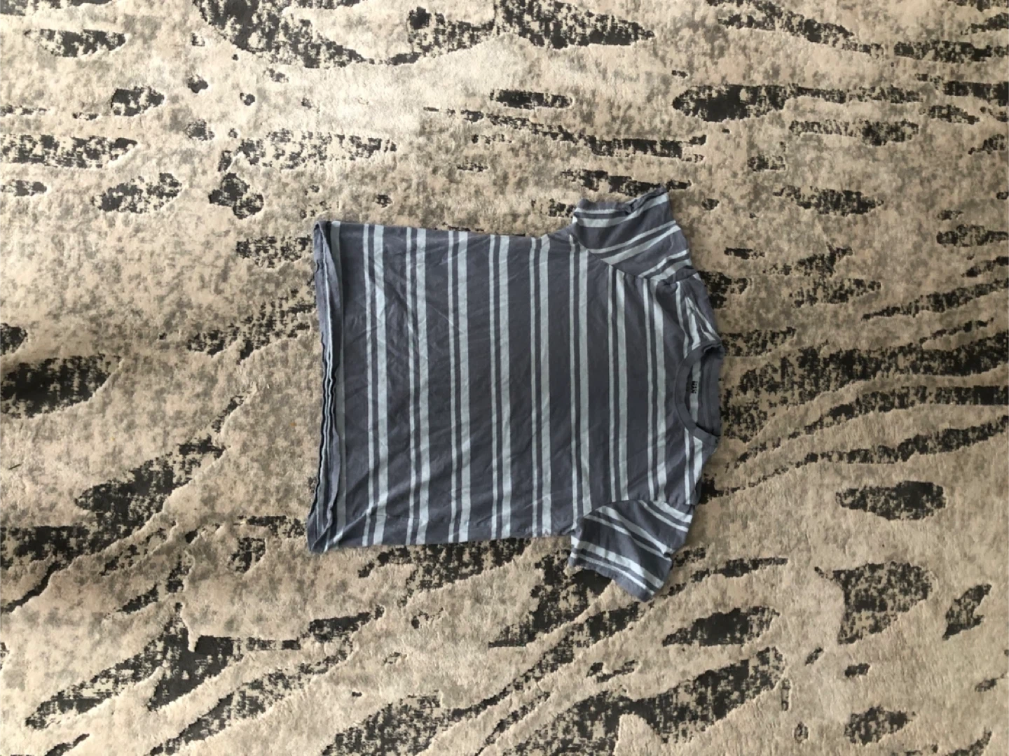 A grey and white striped polo shirt. It's made of a comfortable fabric, perfect for casual wear. It's a versatile piece for any wardrobe.