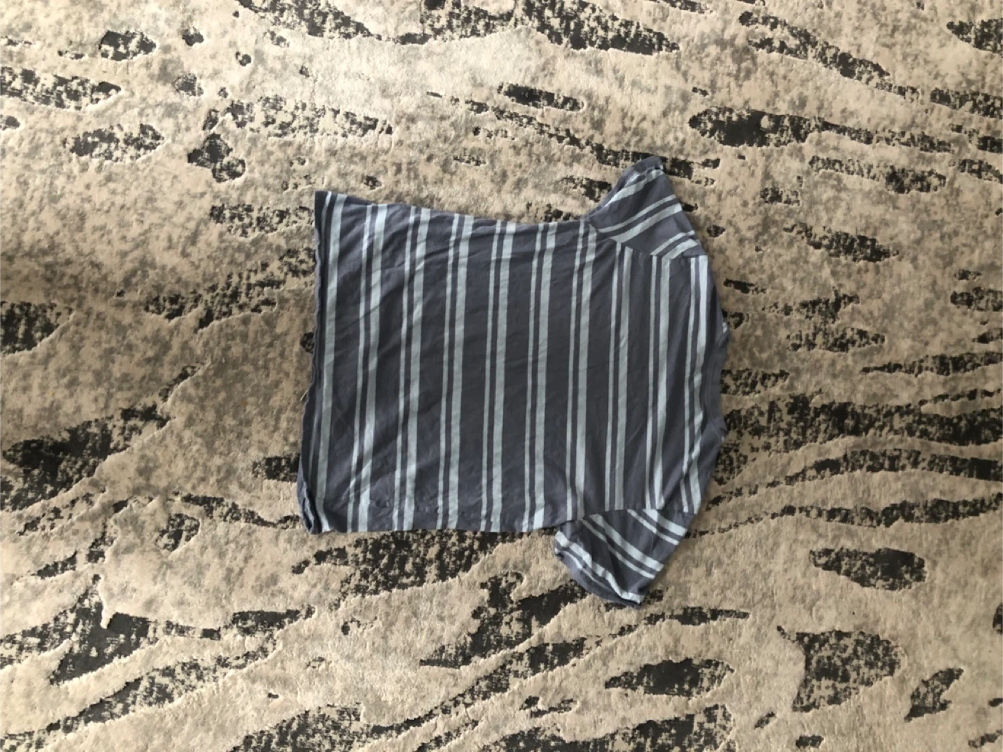 A grey and white striped polo shirt. It's made of a comfortable fabric, perfect for casual wear. It's a versatile piece for any wardrobe.
