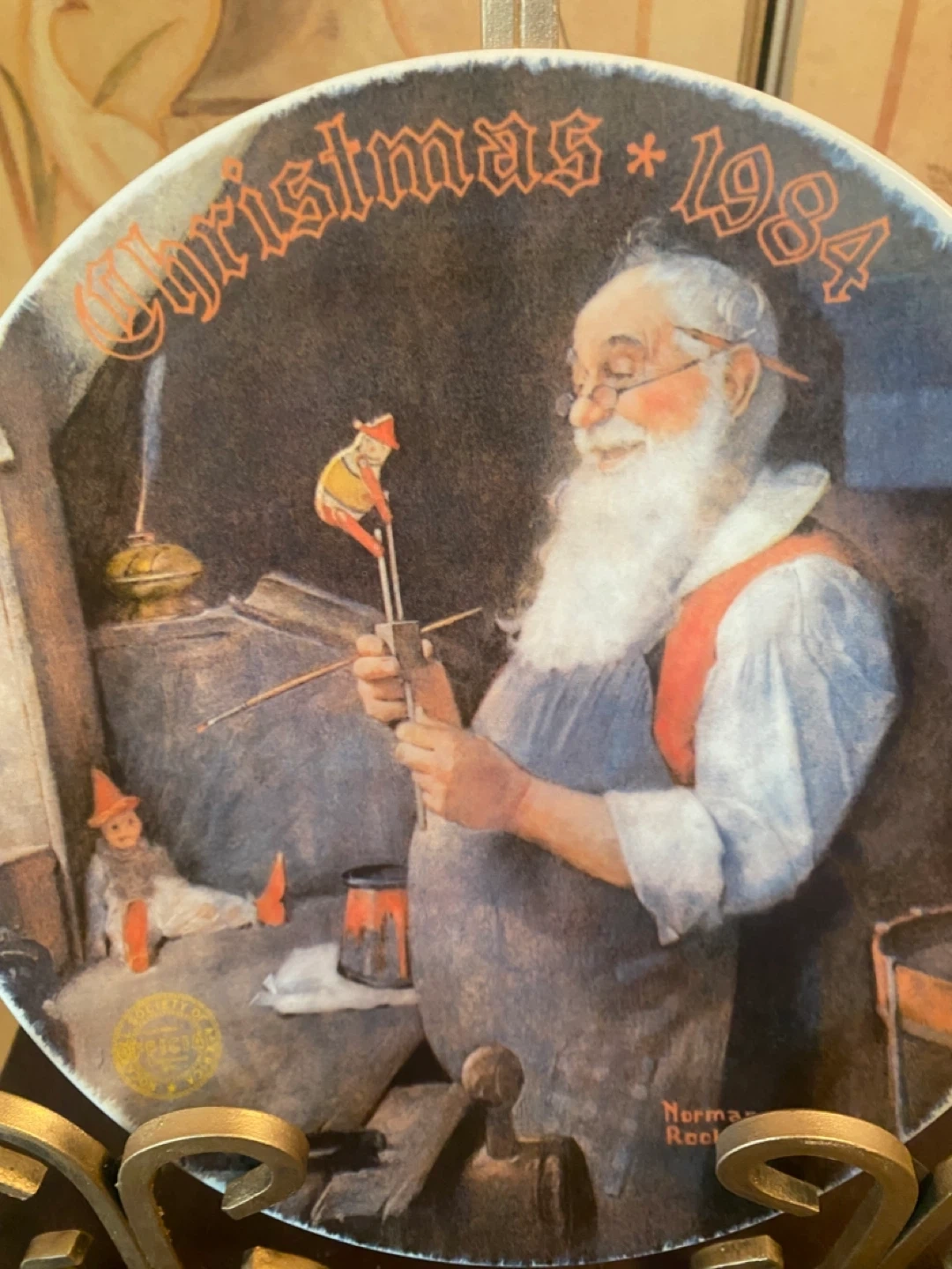 This is the Knowles "Santa in His Workshop" decorative plate from 1984. It's from the first limited edition, painted .This early 20th-century watercolor by Norman Rockwell. Certified by The Rockwell Society of America. Permanently closed in a limited edition series on December 31, 1984.