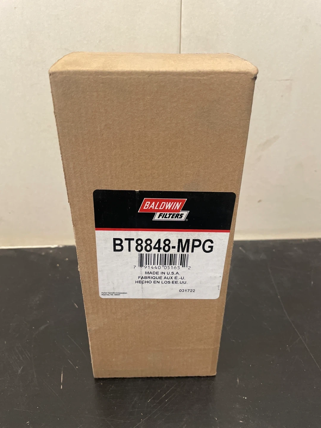 This is a Baldwin Filters BT8848-MPG hydraulic filter. It's a PureForce model made in the U.S.A. The filter is red and comes in its original box. It's suitable for use in various vehicles and machinery.