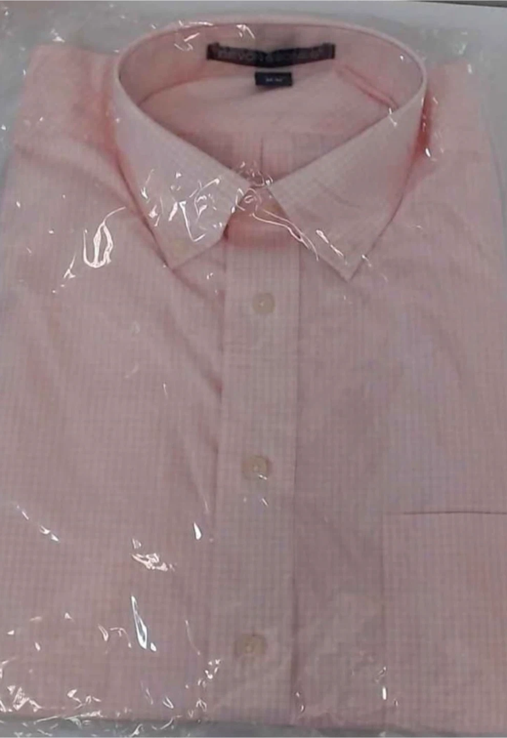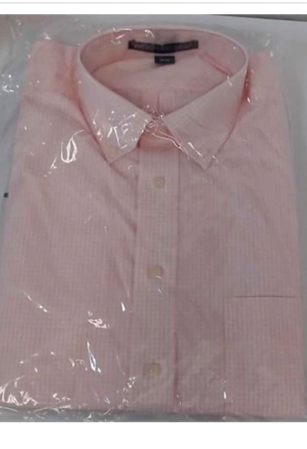 long sleeve dress shirt in pink. Button-up front with a chest pocket. Size is 15.5 neck and 32/33 sleeve. It's still in its original packaging.