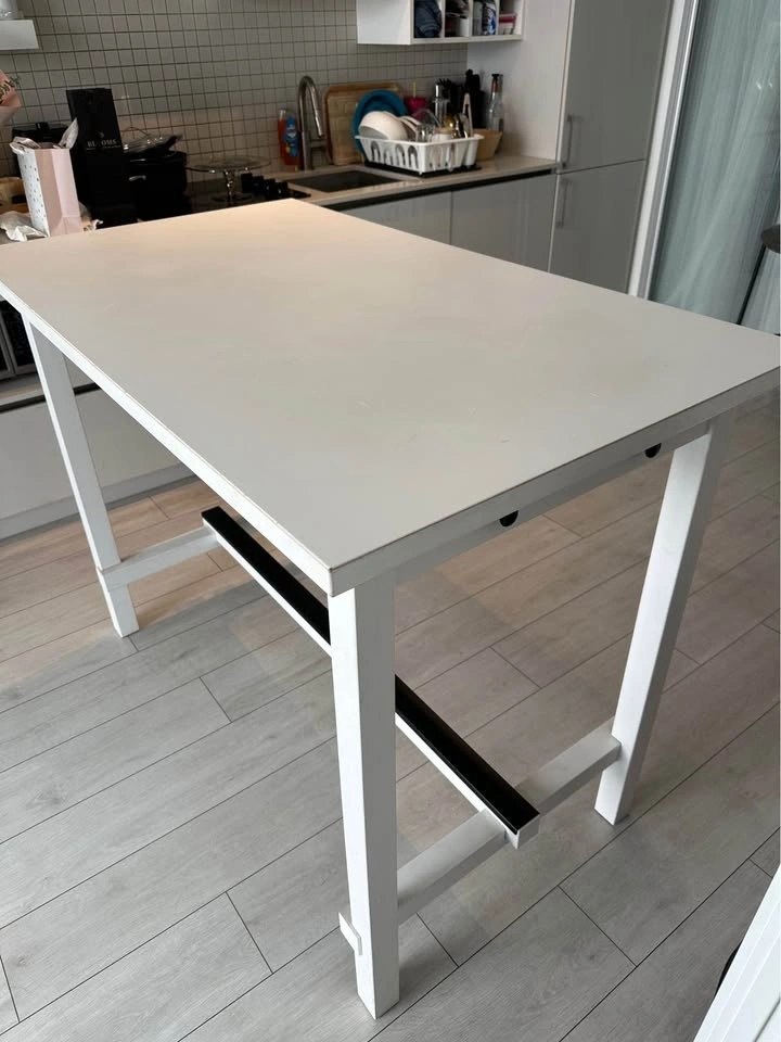 Moving sale! Selling this IKEA NORDVIKEN bar table in white. It’s a sturdy, versatile piece that works perfectly as a high dining table, a kitchen island, or a standing desk. Features: Includes a handy drawer for cutlery or office supplies and a footrest for extra comfort. Condition: Good used condition. Well-maintained in a clean home. Dimensions: 55 1/8" (Length) x 31 1/2" (Width) x 41 3/8" (Height). Material: Solid wood/fiberboard—very durable and easy to wipe clean. Pickup: Must be picked up by January 30th in Vaughan Metropolitan Centre. Transport: The legs can be removed for easier transport. Will fit in most SUVs with the seats down.
