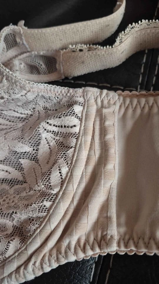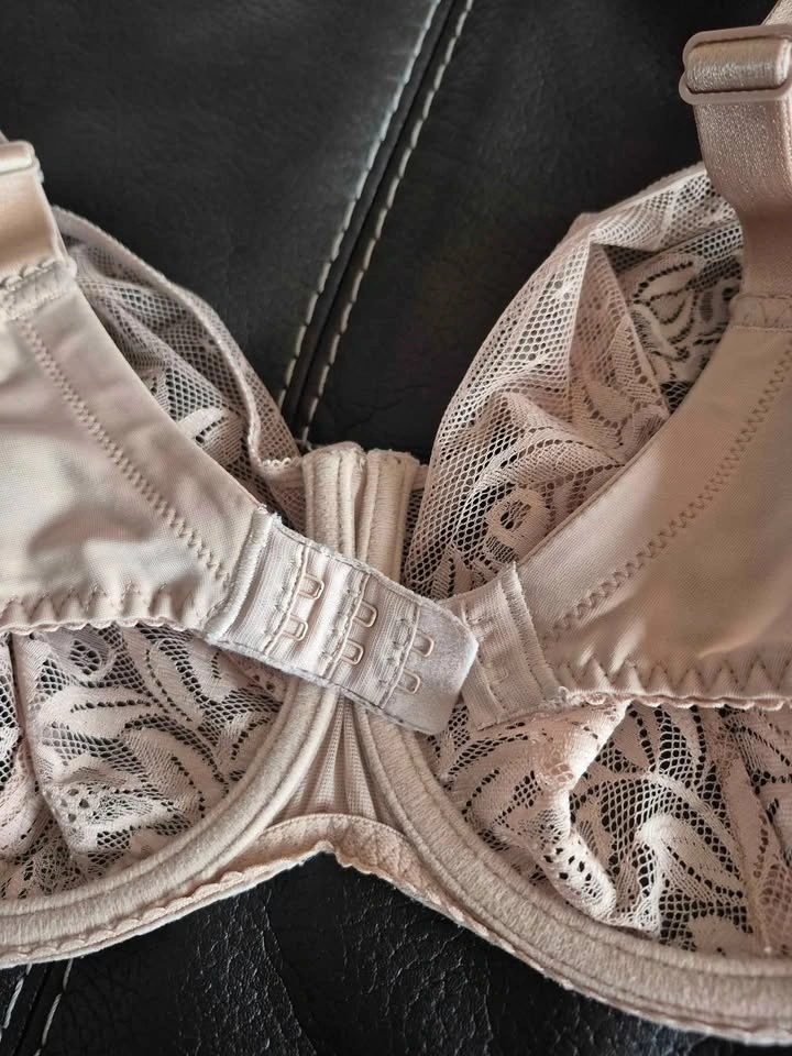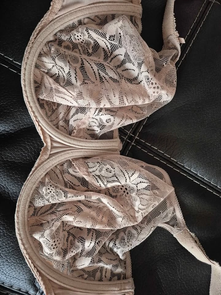 Beautiful underwire lace bra, nude colour. Non-padded, seamless, full cup t-shirt bra. Lace is in perfect condition, no rips or tears. Elastic is in excellent shape. Pick up in Sherwood Park. Cash only.