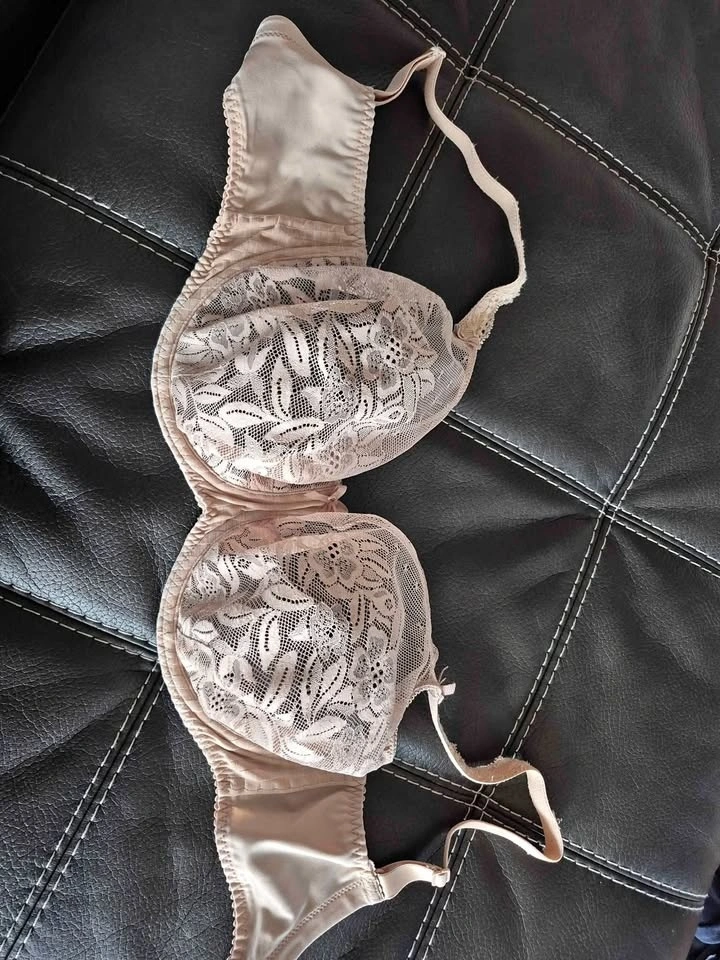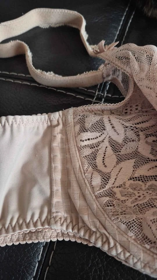 Beautiful underwire lace bra, nude colour. Non-padded, seamless, full cup t-shirt bra. Lace is in perfect condition, no rips or tears. Elastic is in excellent shape. Pick up in Sherwood Park. Cash only.