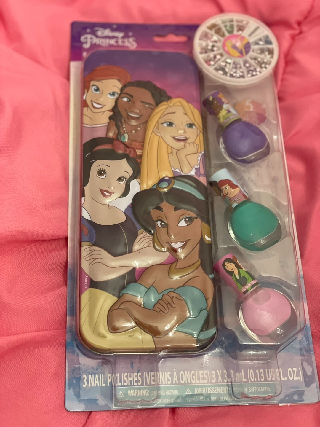 Includes 3 nail polishes, 240 piece nail art gems & 1 tin