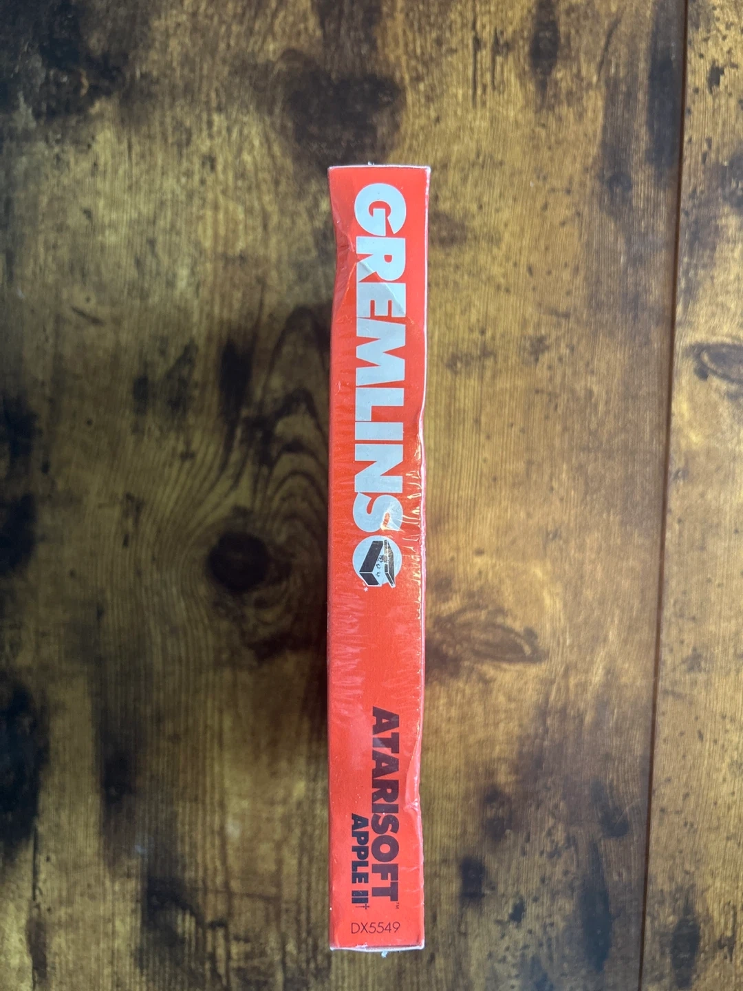 This is the Gremlins game for Apple II computers, made by AtariSoft. It's based on the popular movie. Requires an Apple computer with a disk drive and optional joystick controller. Never been used, still in box.