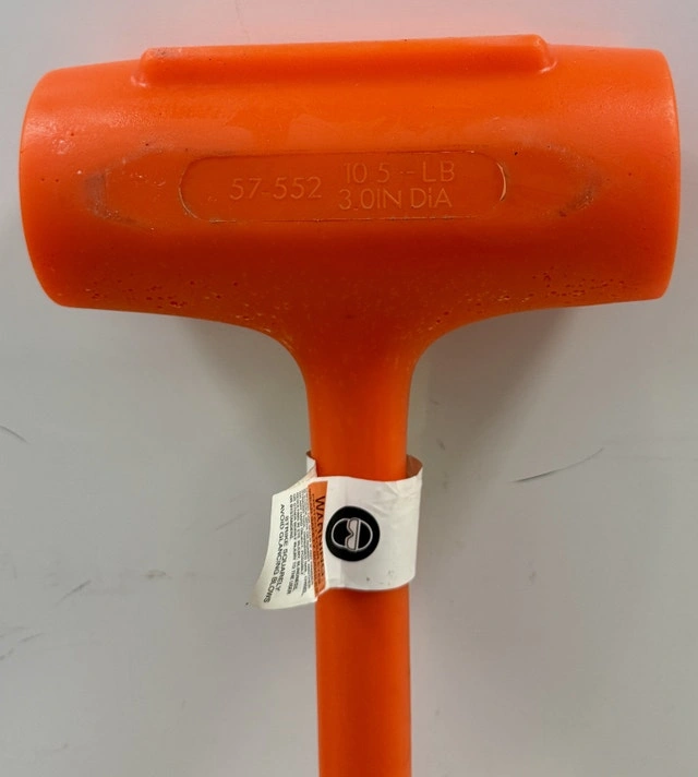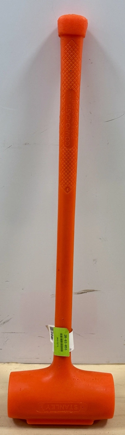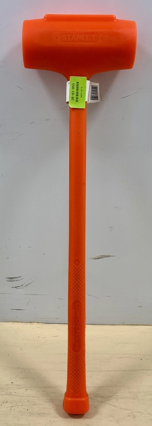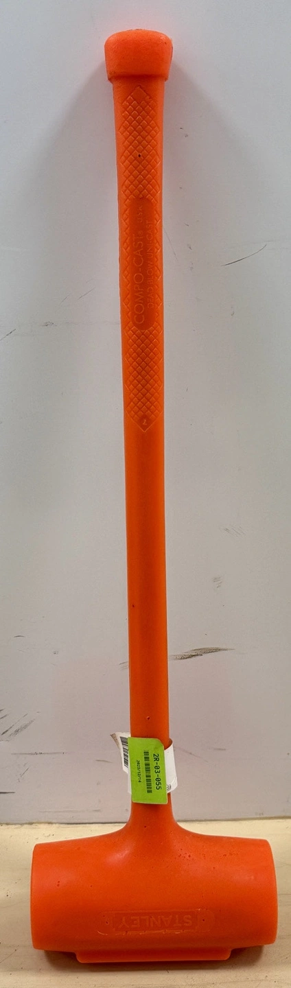 Model # 57-552. This Stanley Compo Cast Sledge Hammer features a non-sparking soft striking face and urethane covering to reduce noise. It's easy to wield yet heavy enough for effective results. The steel-reinforced handle provides strength and safety by resisting breaking on overstrike, while its dead blow function uses steel shot to eliminate bounce back. Its flat head area allows for convenient upright storage. The hammer is 30 inches long and weighs 10 1/2 pounds. Non-sparking, soft face sledgehammer. Uni Cast construction of non-ferrous materials eliminates sparking and won't absorb liquids. No exposed metal on face, head, or shaft. Dead blow function eliminates bounce back when striking hardened surfaces. Soft face helps prevent marring. Asking $300 or best offer. Compare at $423.45 or more plus taxes.