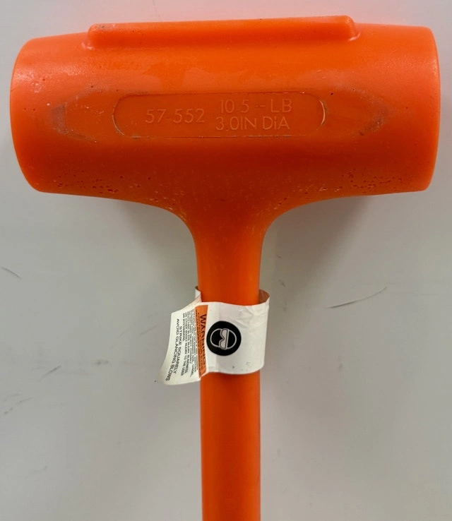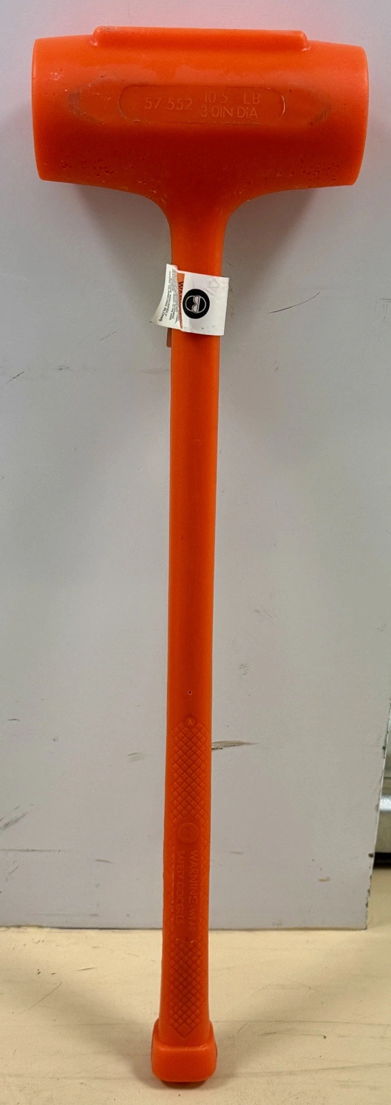 Model # 57-552. This Stanley Compo Cast Sledge Hammer features a non-sparking soft striking face and urethane covering to reduce noise. It's easy to wield yet heavy enough for effective results. The steel-reinforced handle provides strength and safety by resisting breaking on overstrike, while its dead blow function uses steel shot to eliminate bounce back. Its flat head area allows for convenient upright storage. The hammer is 30 inches long and weighs 10 1/2 pounds. Non-sparking, soft face sledgehammer. Uni Cast construction of non-ferrous materials eliminates sparking and won't absorb liquids. No exposed metal on face, head, or shaft. Dead blow function eliminates bounce back when striking hardened surfaces. Soft face helps prevent marring. Asking $300 or best offer. Compare at $423.45 or more plus taxes.