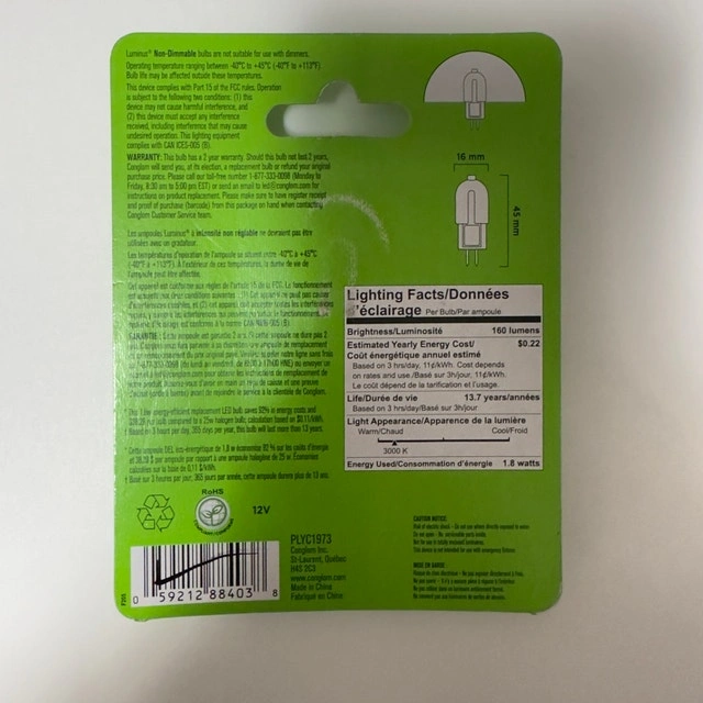 Luminus 25W G4 LED Bulb, 3000K, New (5 Available)