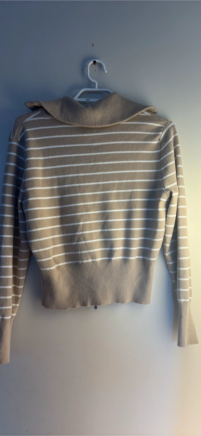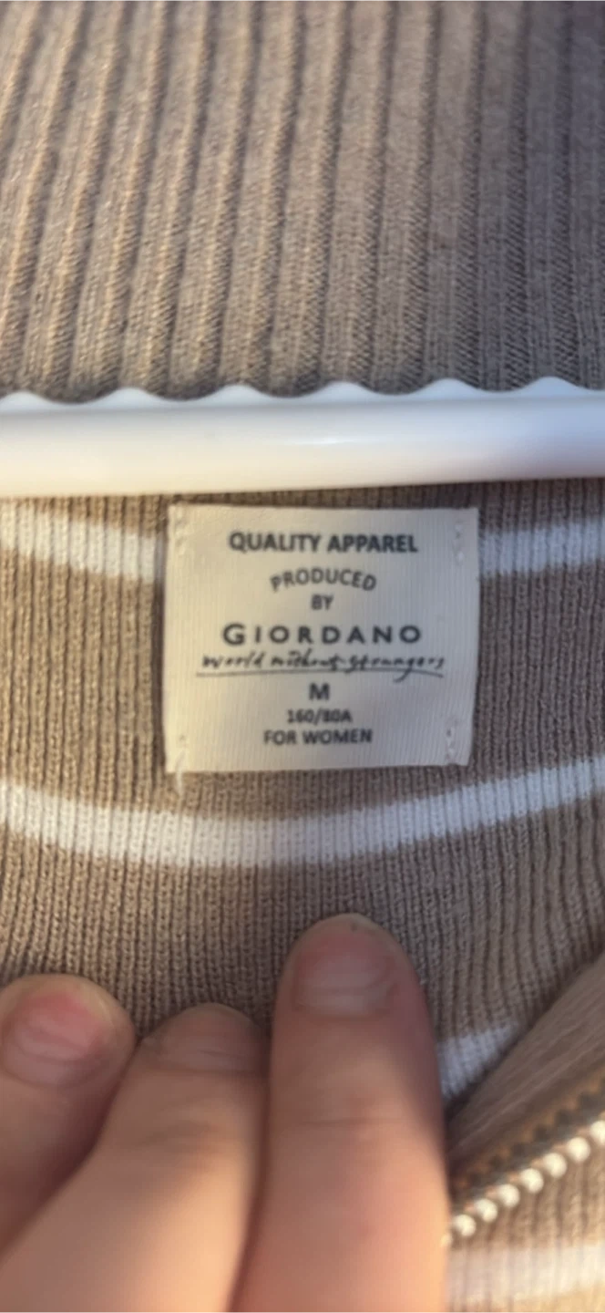 GIORDANO Women's Striped Zip-Up Sweater - Size M