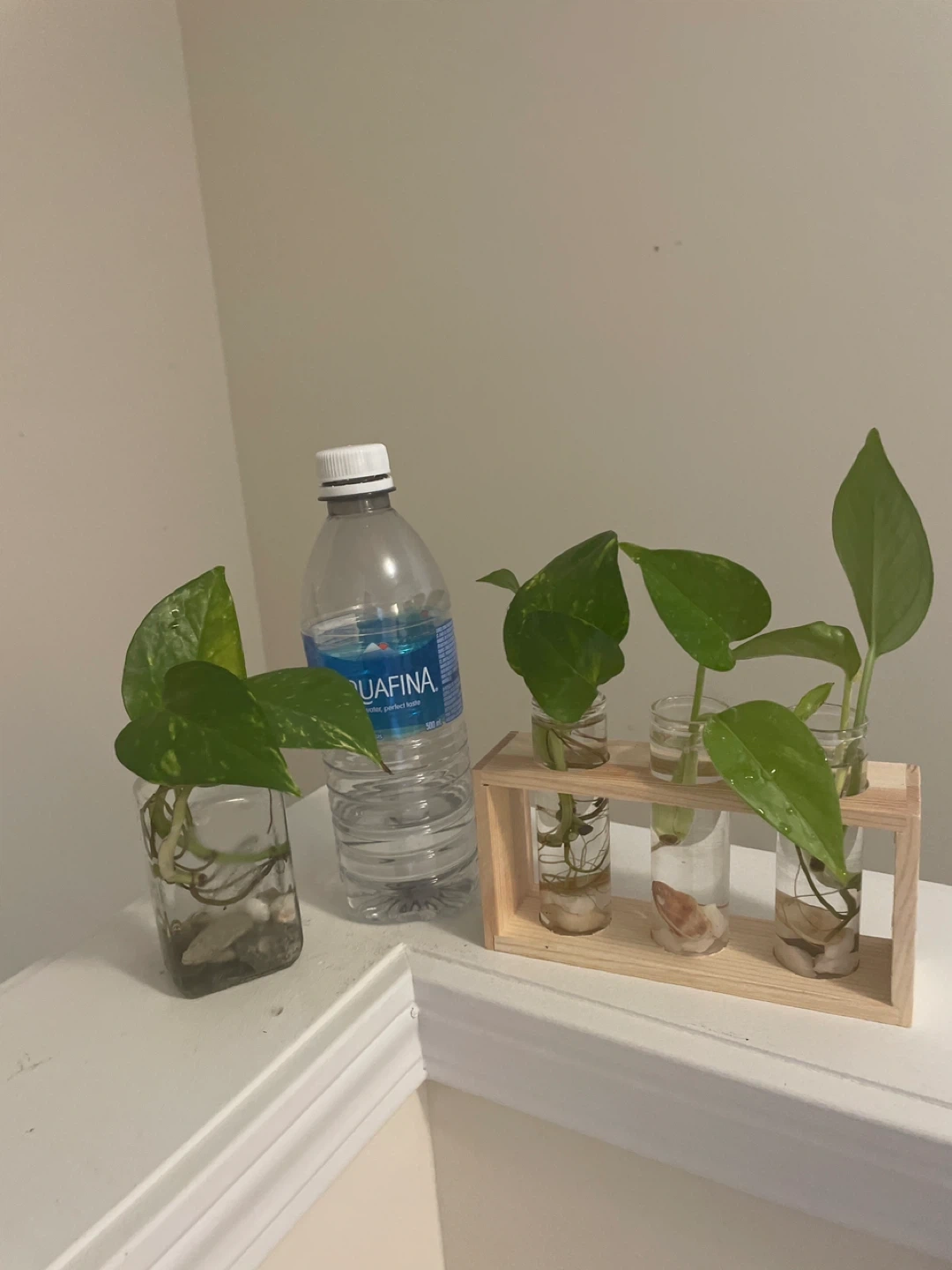 Pothos Plant Cuttings in Wooden Stand