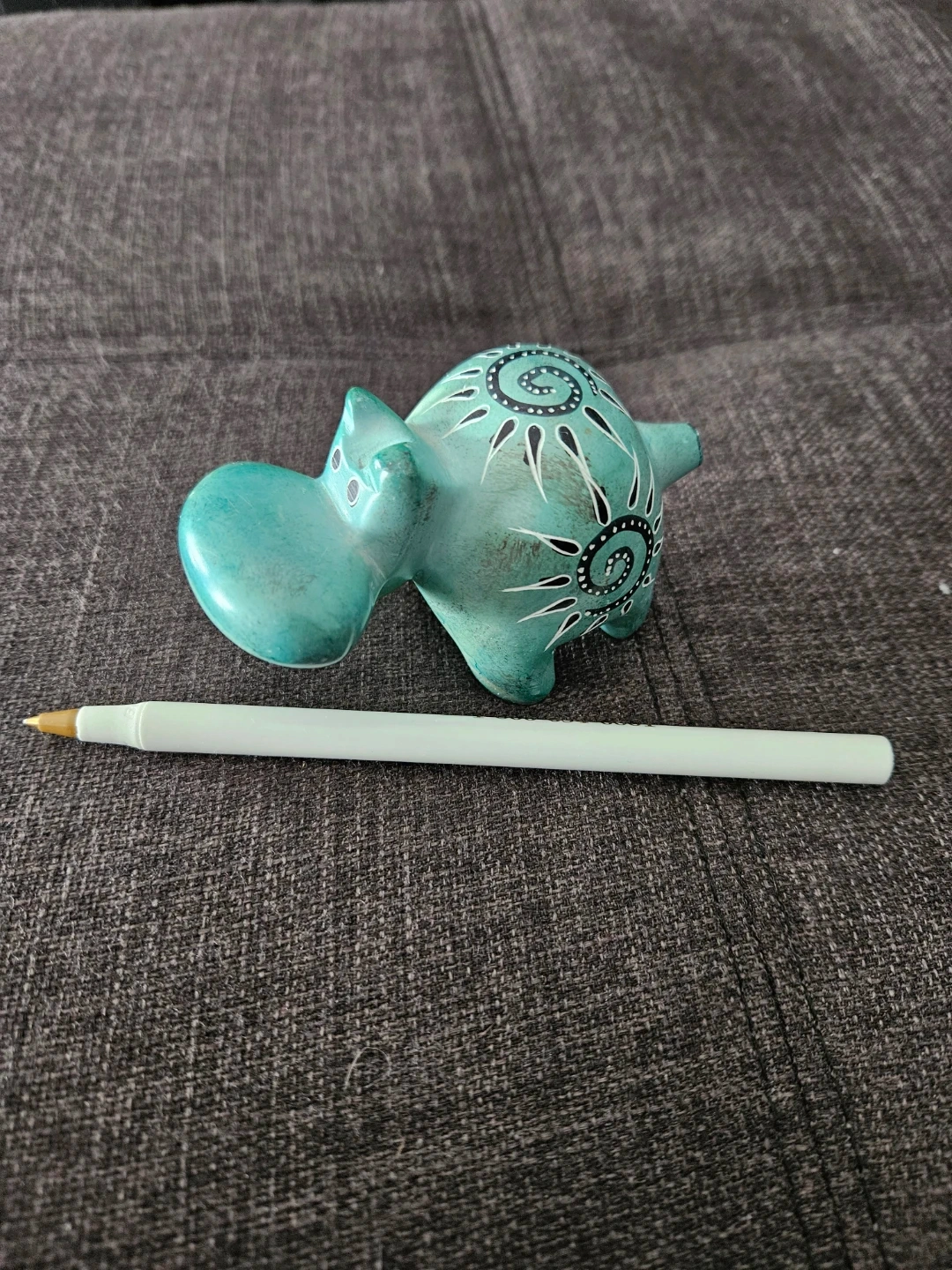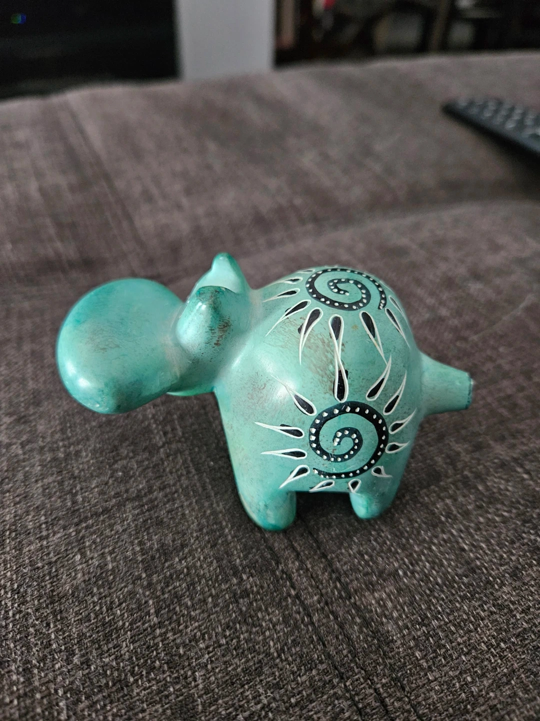 Turquoise Hippo Figurine with Swirl Design