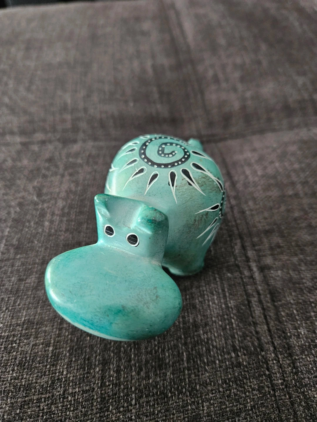 Turquoise Hippo Figurine with Swirl Design