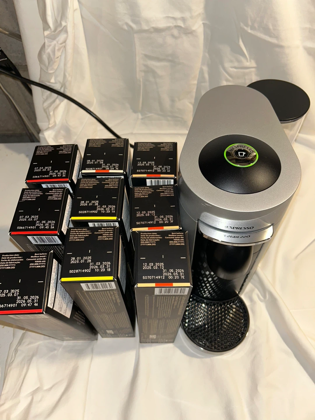 Comes with 11 unopened boxes of Vertuo coffee pods, including Melozio Decaffeinato, Sweet Vanilla Dolce, Solelio, and Half Caffeinato. Plus about 20 extra pods. Milk frother not included. Excellent condition. Selling because we don’t use often.