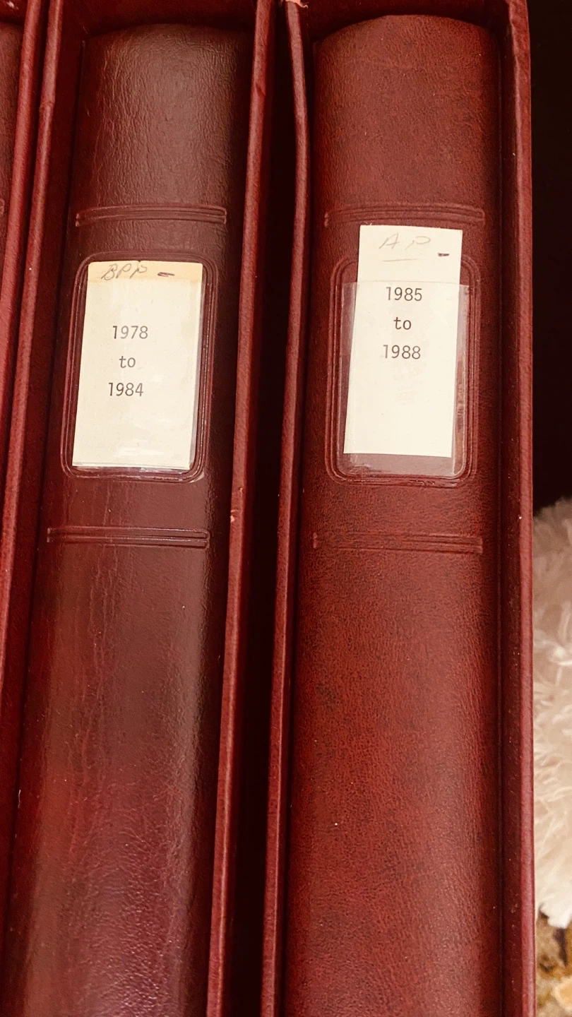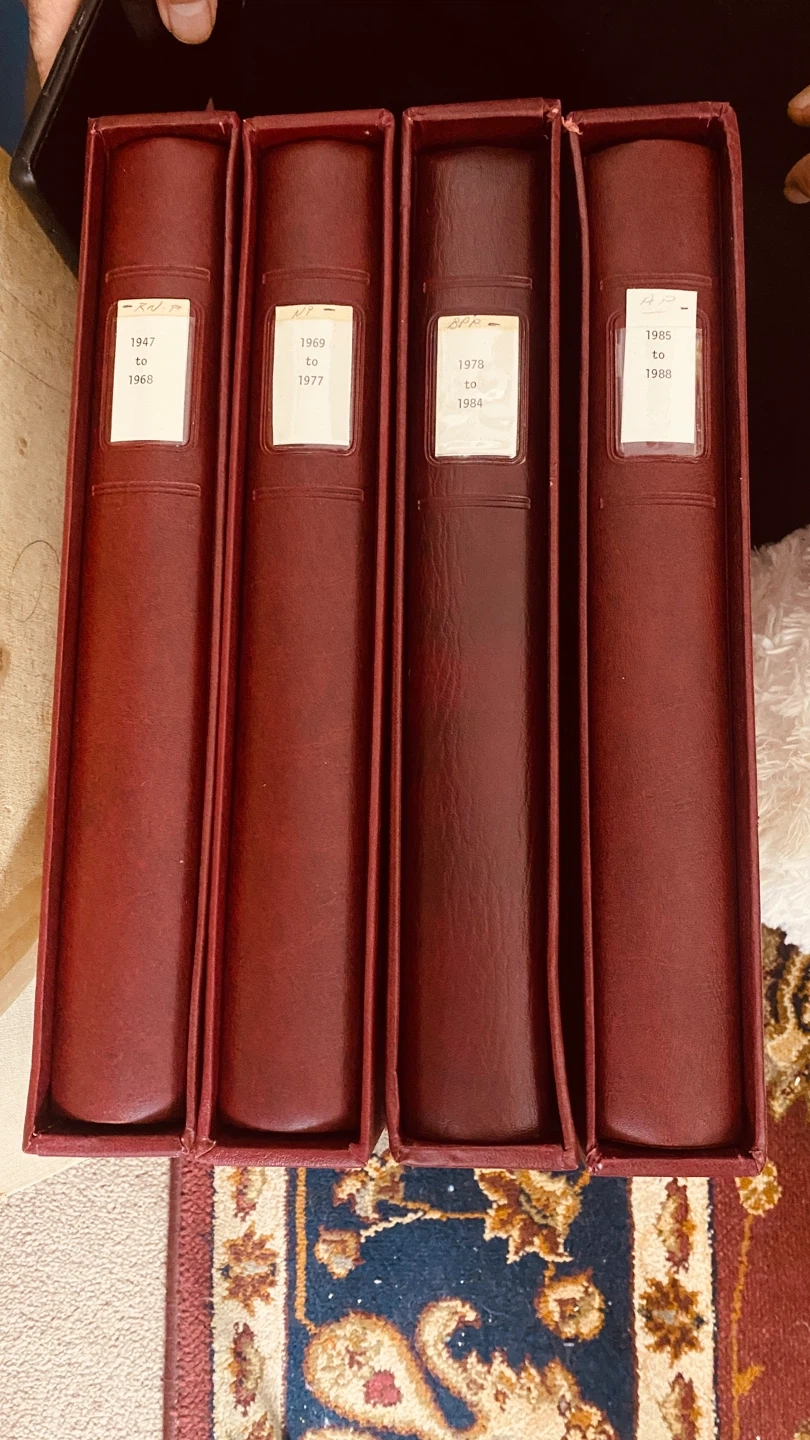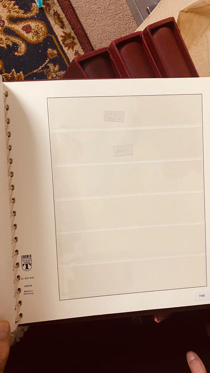 Collection of Lindner stamp albums and binders. Includes volumes covering years 1947-1968, 1969-1977, 1978-1984, and 1985-1988. These are great for organizing and preserving your stamp collection.