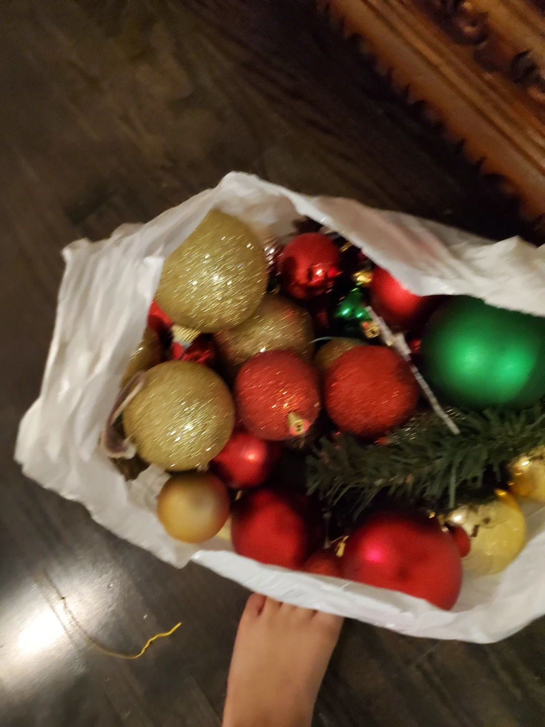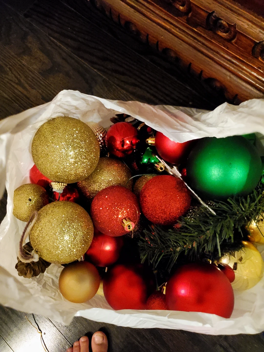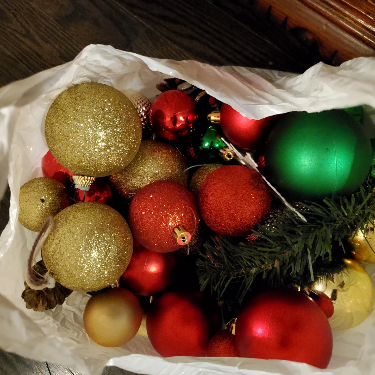 Bag of Christmas Ornaments - Red, Green, Gold