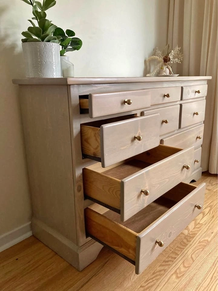 This beautifully refinished solid wood vintage dresser offers 10 drawers, making it an ideal storage solution for bedrooms, shared spaces, or anywhere you need serious organization with style.