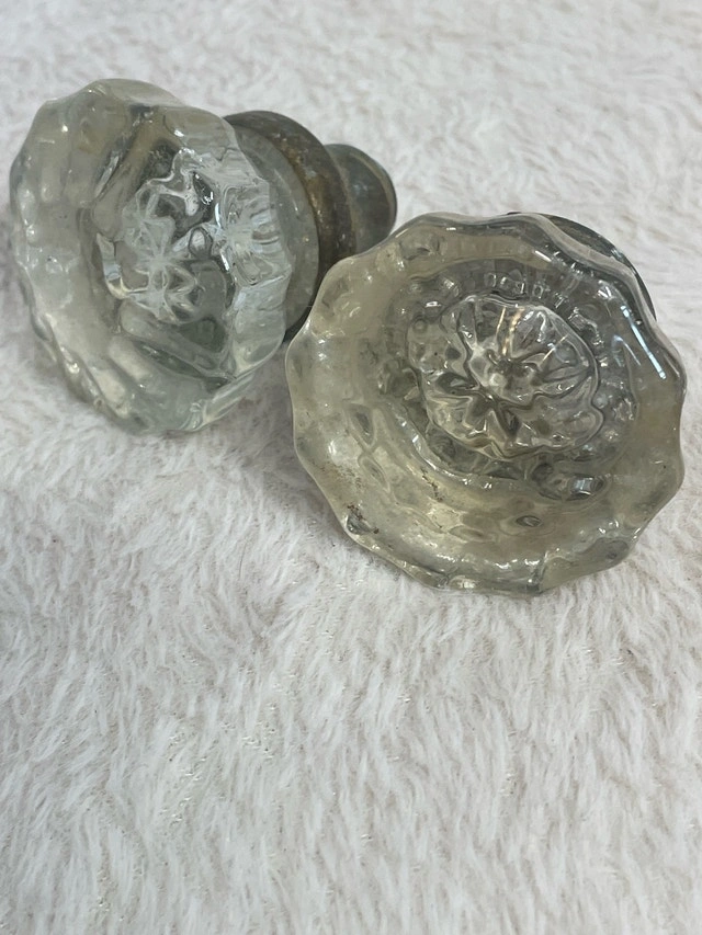 Antique Victorian glass doorknob with a fluted design around the edge and a lightly scalloped edge. Pickup in the Bayview Davisville area. Please check out my other listings for more treasures!