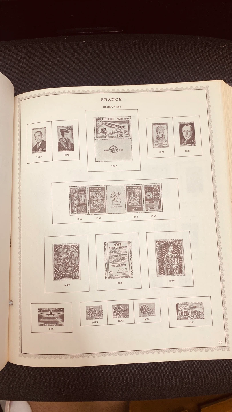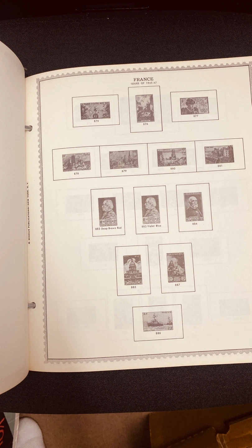 This is a Minkus Publications album for French postage stamps. It's a complete and profusely illustrated guide. Covers stamps from France, post offices abroad, and occupied territories in Europe.