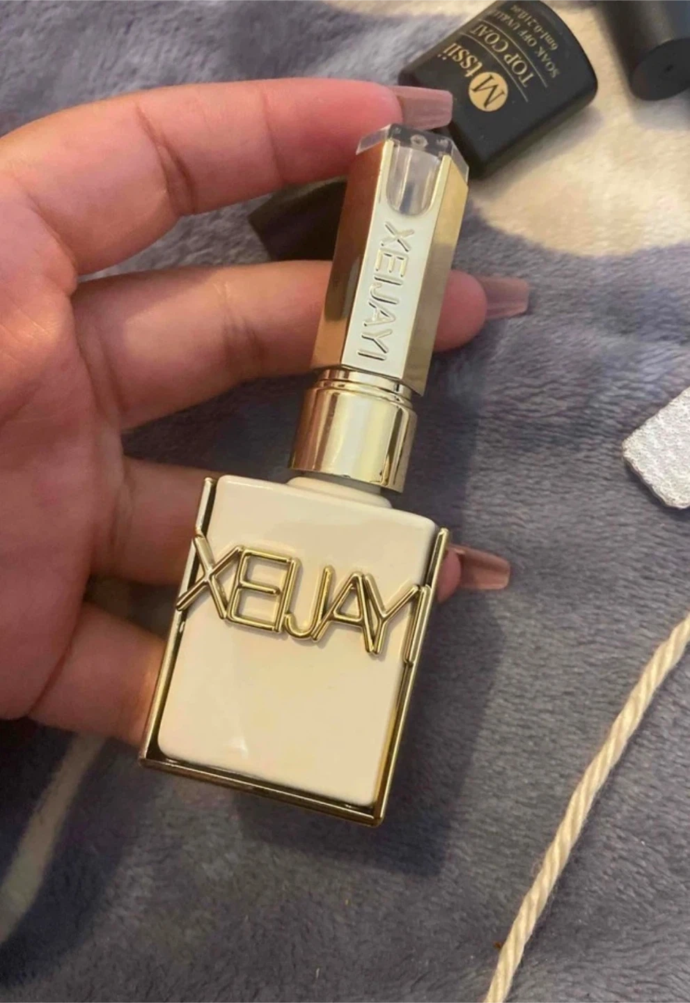 XEJIYAI Nail Gel Polish in a 15ml bottle. It's soak-off UV/LED gel that can be used as a base coat. This gel doesn't hurt your nails and can firmly affix diamonds.
