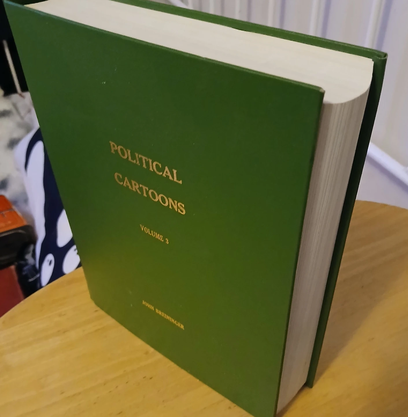 This is Volume 3 of Political Cartoons, authored by John Breininger. It showcases a collection of political cartoons. The book is hardcover.