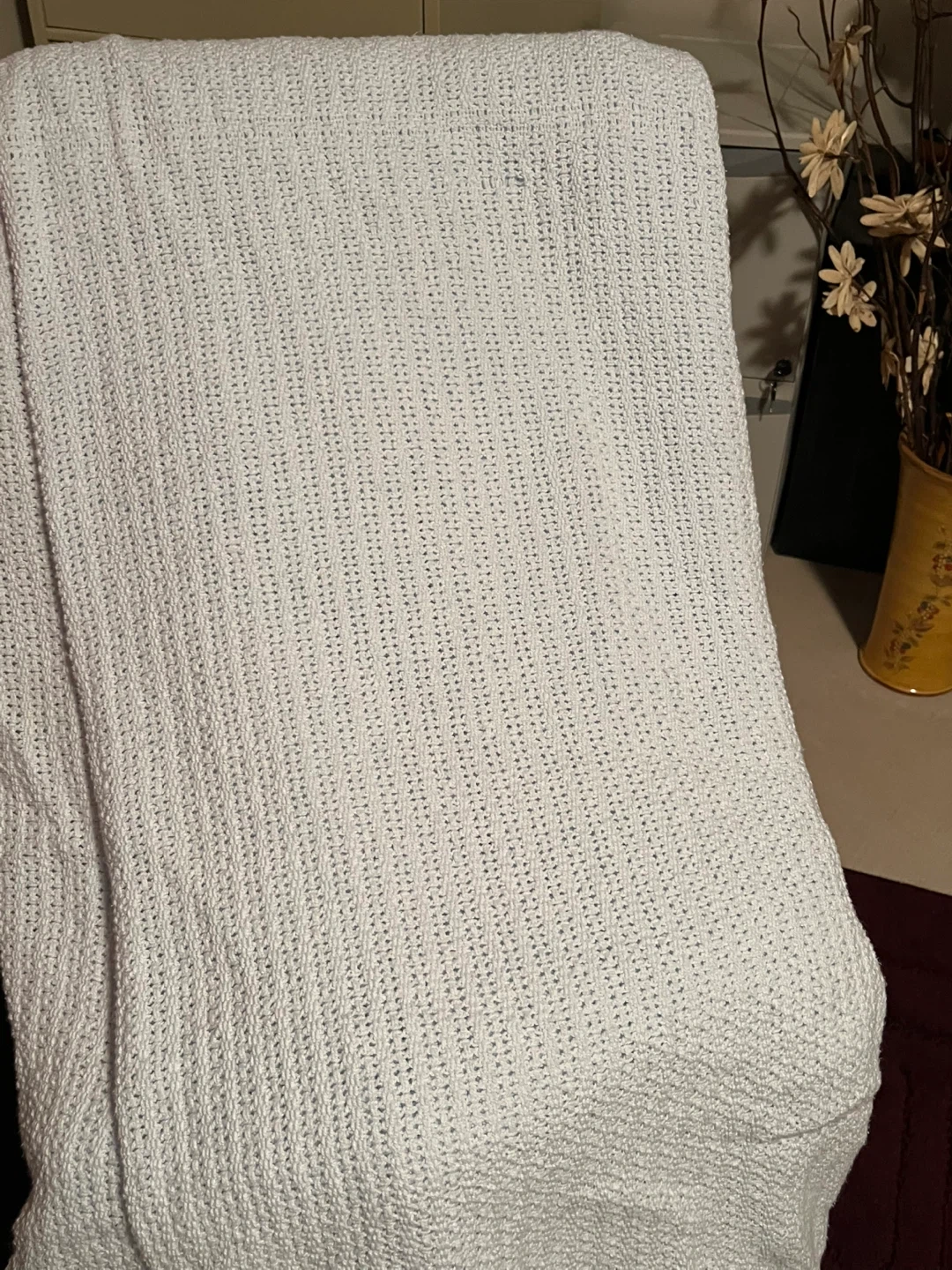 Soft and breathable knit throw blanket. Perfect for adding a touch of comfort to your couch or bed. Its open-knit pattern makes it a great choice for warmer weather or layering.