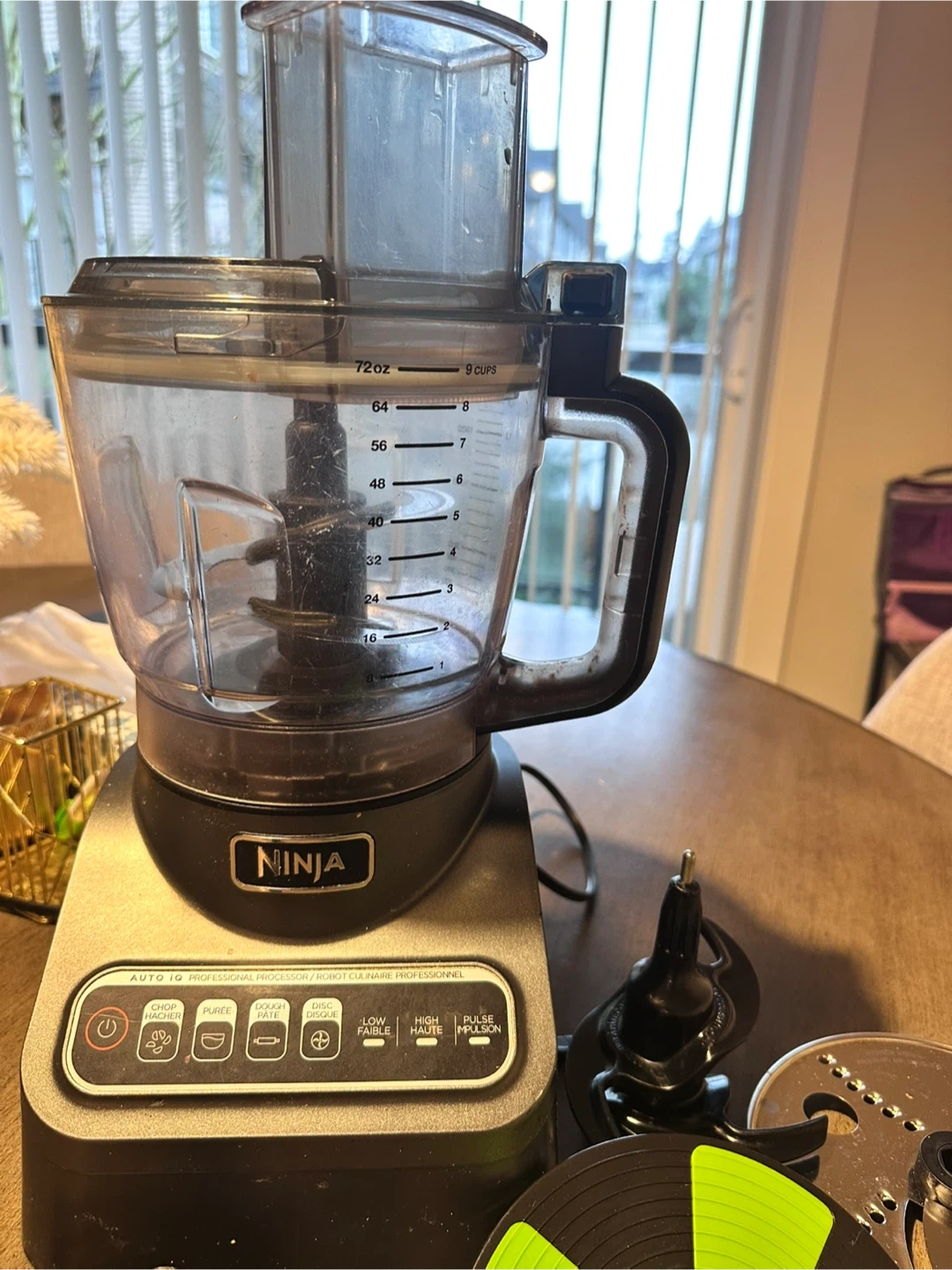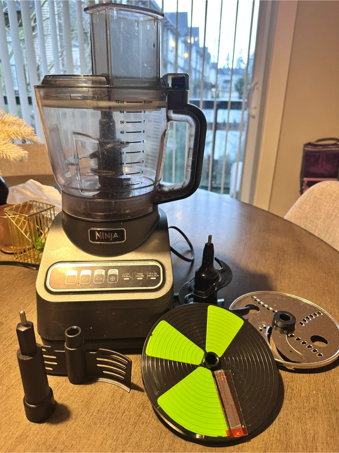 This Ninja food processor has a 72 oz capacity. It includes multiple blade attachments for various chopping and slicing tasks. The control panel offers Auto-iQ programs for consistent results.
