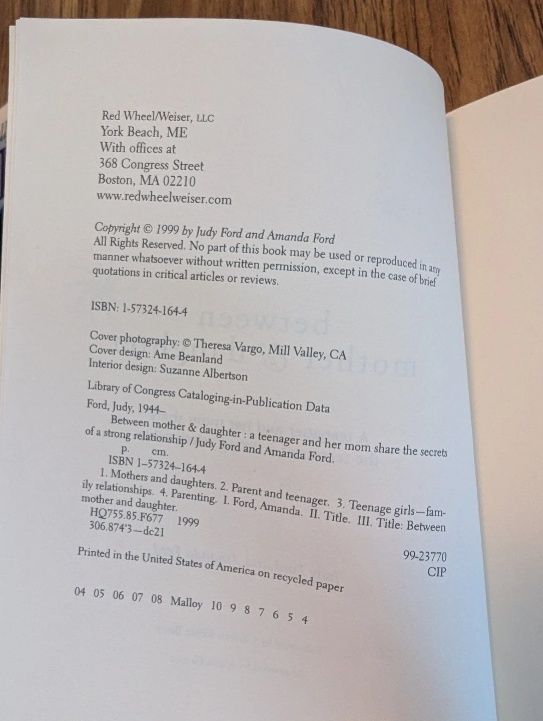 Between Mother & Daughter Book by Judy Ford & Amanda Ford