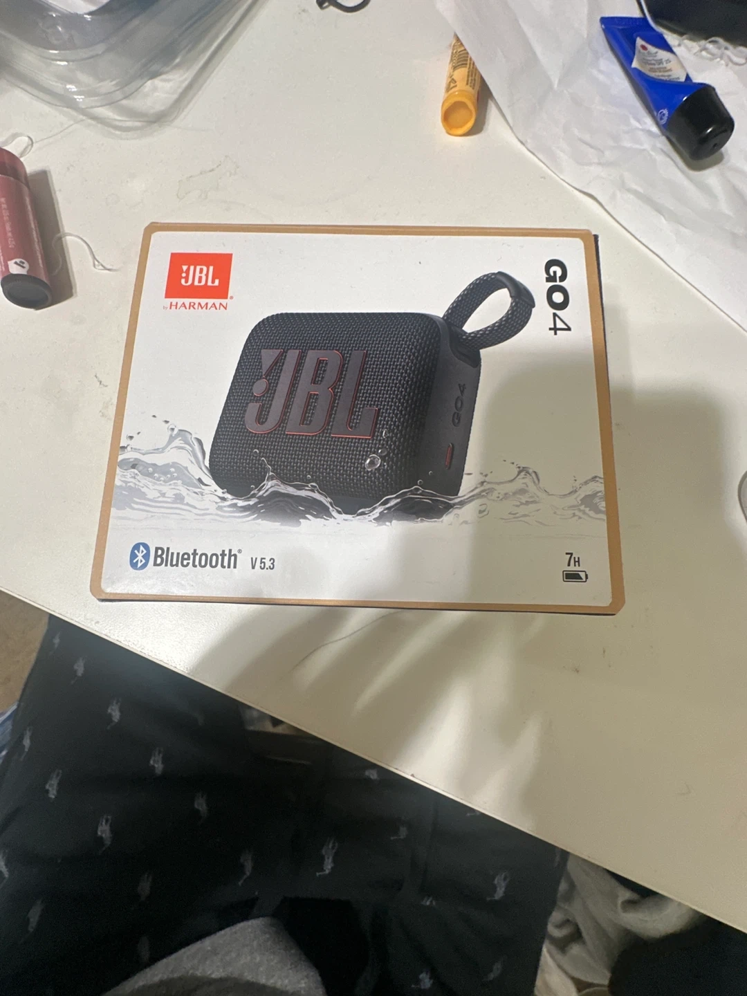 This is a JBL GO 4 portable Bluetooth speaker. It offers Bluetooth v5.3 connectivity and up to 7 hours of playtime. Comes in original box.