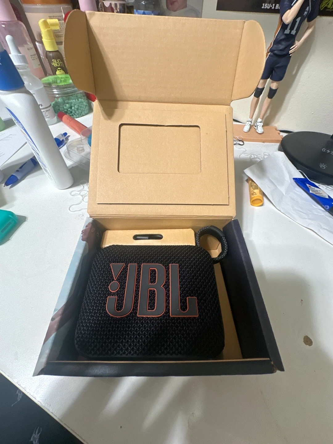 This is a JBL GO 4 portable Bluetooth speaker. It offers Bluetooth v5.3 connectivity and up to 7 hours of playtime. Comes in original box.