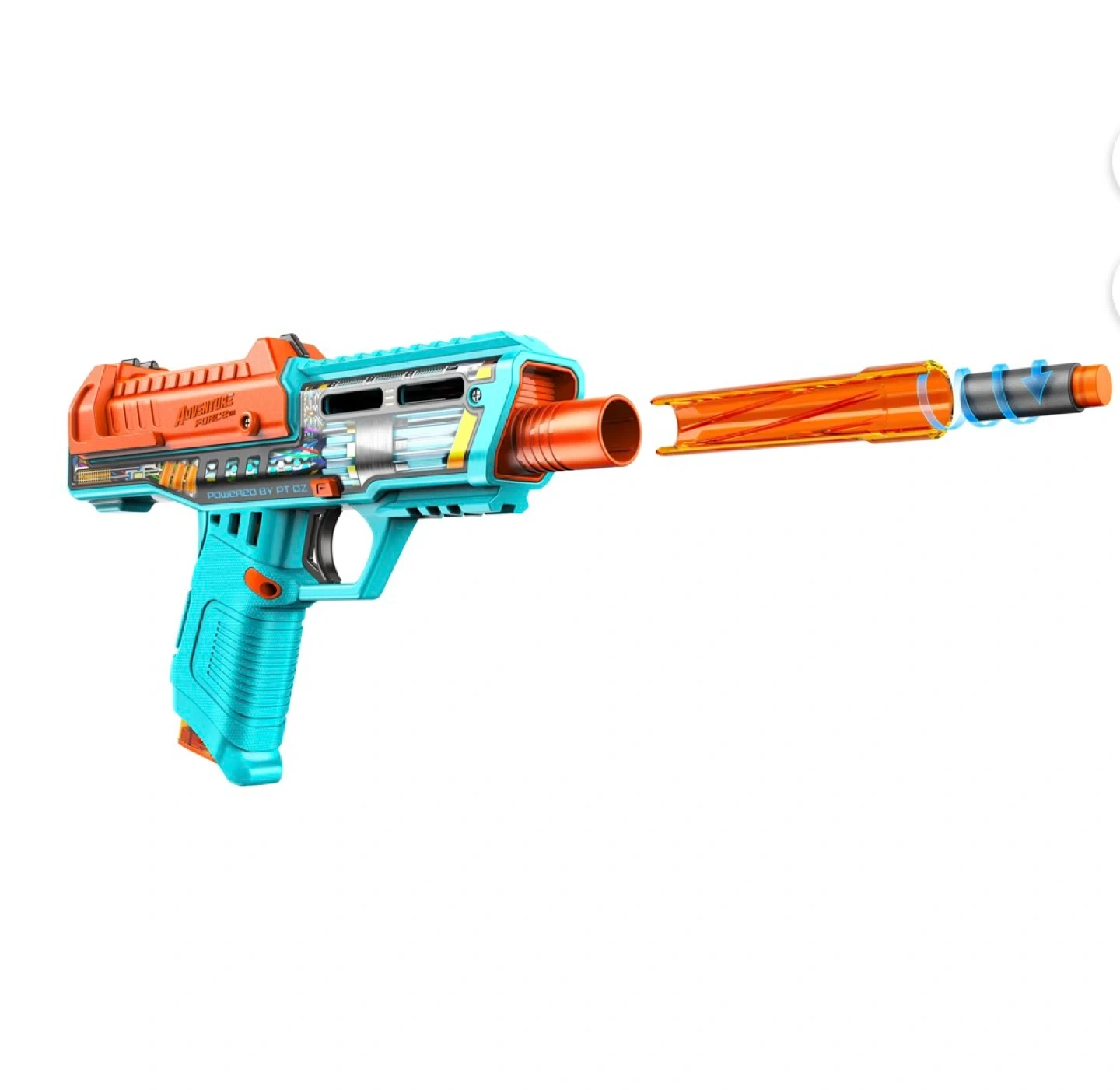This is the Adventure Force Brute Pro Tactical Strike Ultimate Clip-fed Slamfire Blaster. It shoots up to 140 feet and has a half-length adventure force pro darts system.