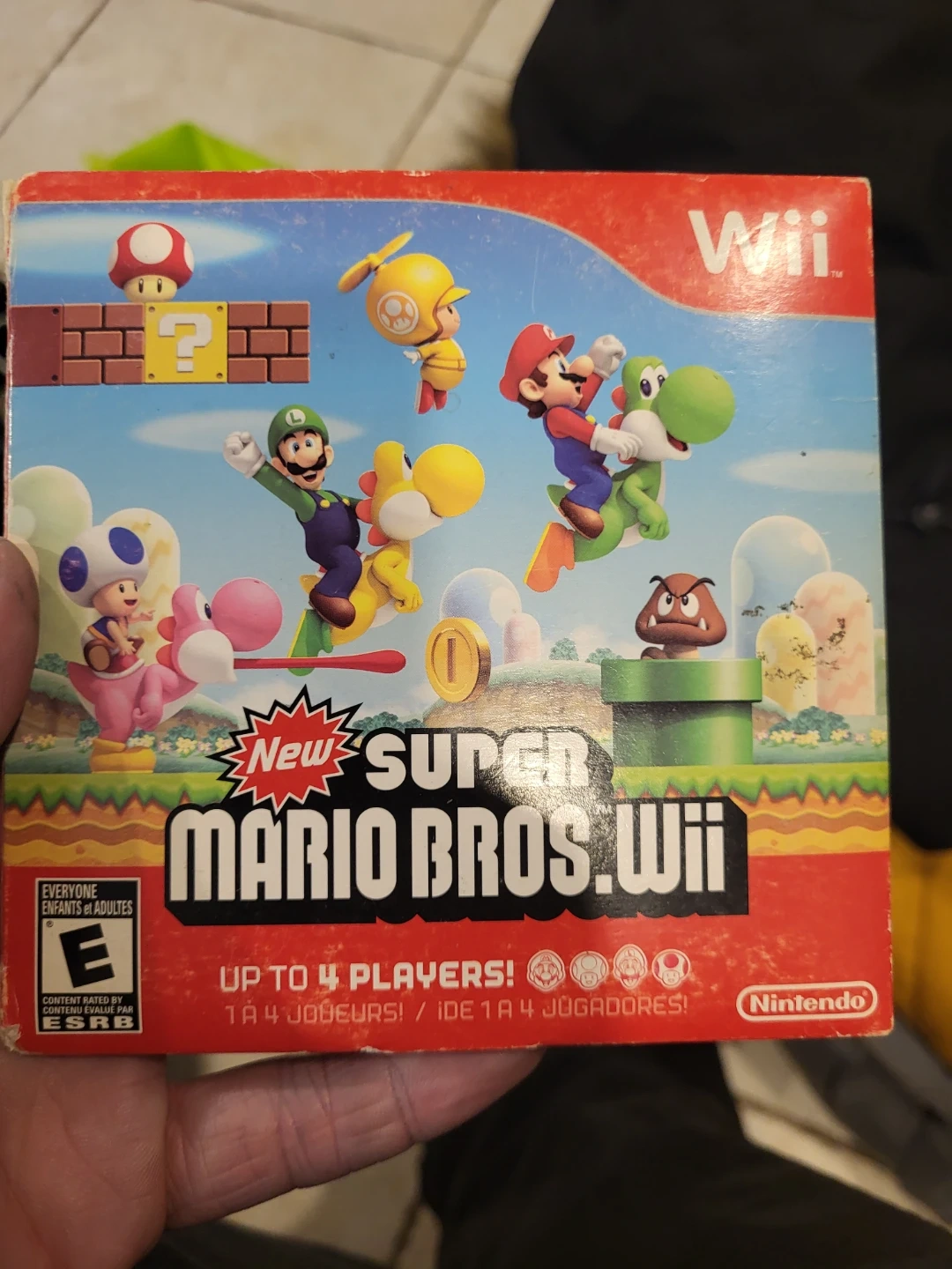 This is the New Super Mario Bros. Wii game for the Nintendo Wii console. It supports up to 4 players simultaneously. It's a fun game for family and friends!