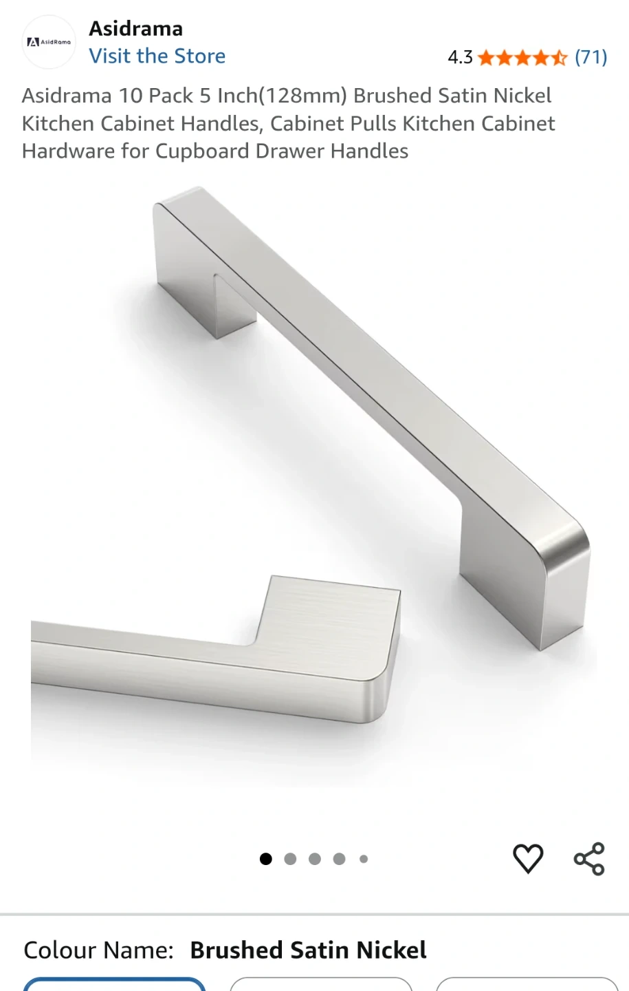 I am selling new 10 pack of Asidrama 5 Inch (128mm) brushed satin nickel kitchen cabinet handles, cabinet pulls kitchen cabinet hardware for cupboard drawer handles. These handles are new in their original packaging, ready to add a touch of elegance to your kitchen or furniture.