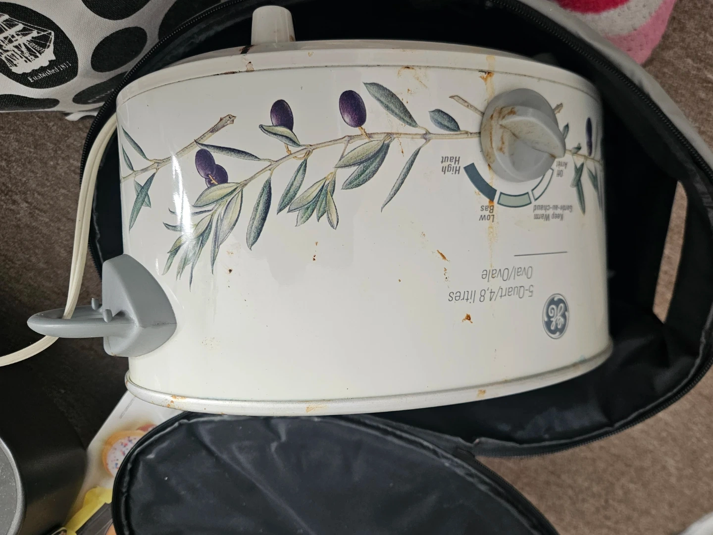 This GE oval slow cooker is 5-quart capacity. It features adjustable temperature settings including Low, High, and Keep Warm. Comes with the glass lid and travel bag. Sfpf Oshawa Harmony Road South at 401