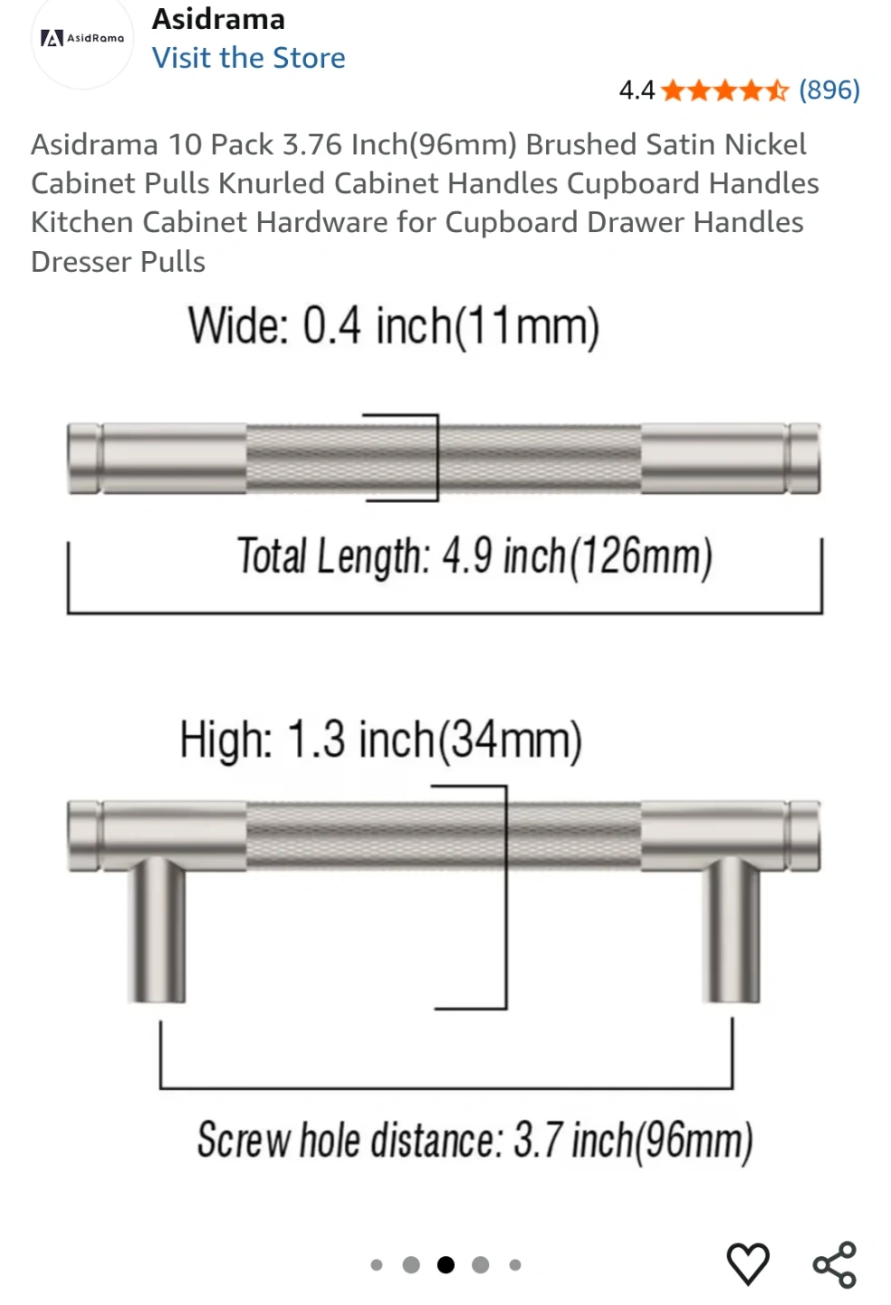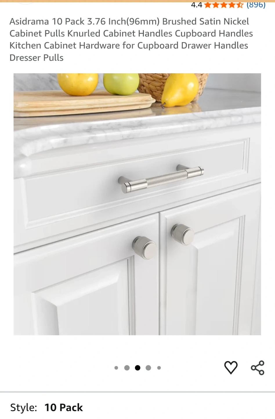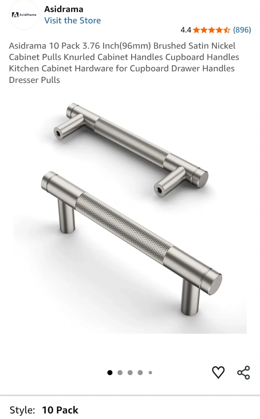 Enhance your cabinets with this new Asidrama 10-pack of 3.76-inch brushed satin nickel cabinet pulls, complete with a knurled design for a modern touch. These handles are perfect for kitchen cupboards, drawers, and dressers. They are brand new, still sealed in their original packaging.