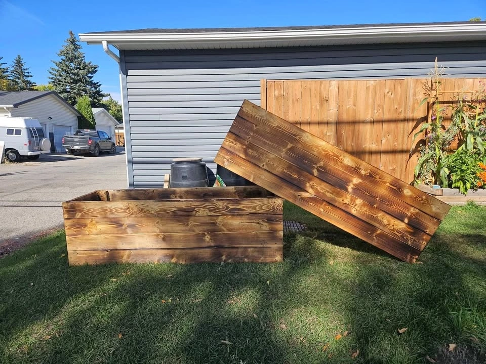 Spruce Garden Beds treated with oil and charred with fire. They look great and last a super long time. I can make custom sizes but the dimensions that will be the best bang for your buck will be: 6 feet long by 2'3 wide. Prices as follows: 6x2'3x11' - $110; 6x2'3x16.5' - $150; 6x2'3x22' - $190. Yes, I can still build these in the winter! As long as it's warmer than -10, otherwise you can put an order in and I'll work on it when weather permits. I can build with another type of lumber but beware it will increase the costs of the bed significantly. Spruce works great in Alberta's dry climate especially after the oil and fire treatment. Prices are firm, thanks for understanding!