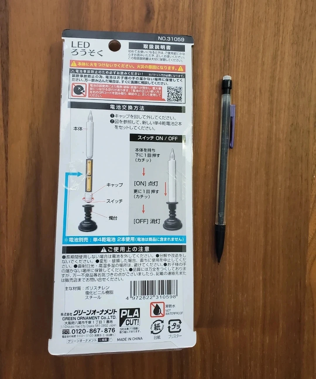 Battery-operated LED candle light featuring a swaying light effect. Requires two AAA batteries, not included. Pencil for size reference. Pickup in Mission area.