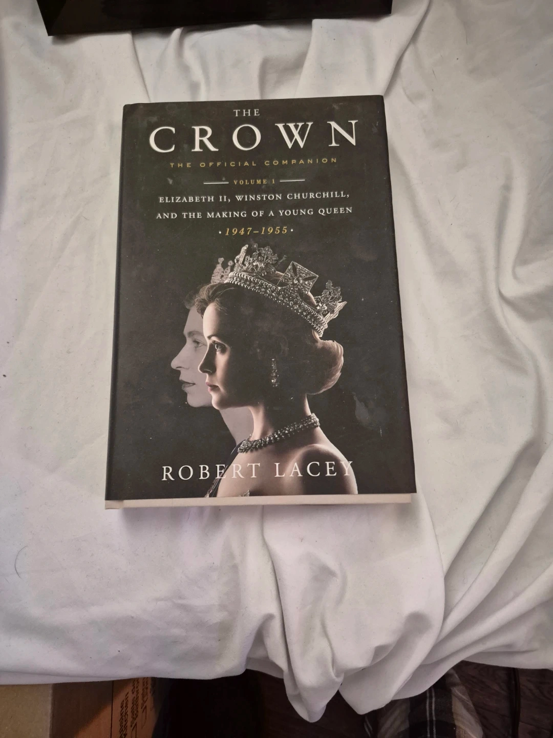 This is Volume 1 of The Crown: The Official Companion, written by Robert Lacey. It covers Elizabeth II, Winston Churchill, and the making of a young queen from 1947-1955. A great read for history buffs!