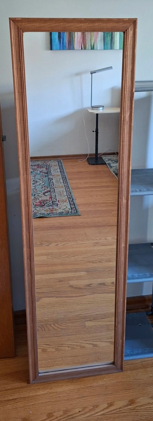 Buy & SellTall Wooden Framed MirrorTall Wooden Framed MirrorFreeThis is a tall, full-length mirror with a warm wooden classic frame. Height 50" X width 14" approx. ConditionGoodWHERE TO MEETCheck LocationView MapSELLERRozeBanff Trail19613 reviews2 chats·2 favorites·34 viewsSEND CHAT TO SELLERHi Roze! I’m interested in your listing.Hi Roze! I’m interested in your listing.Get the Karrot app to chatSign In to chat