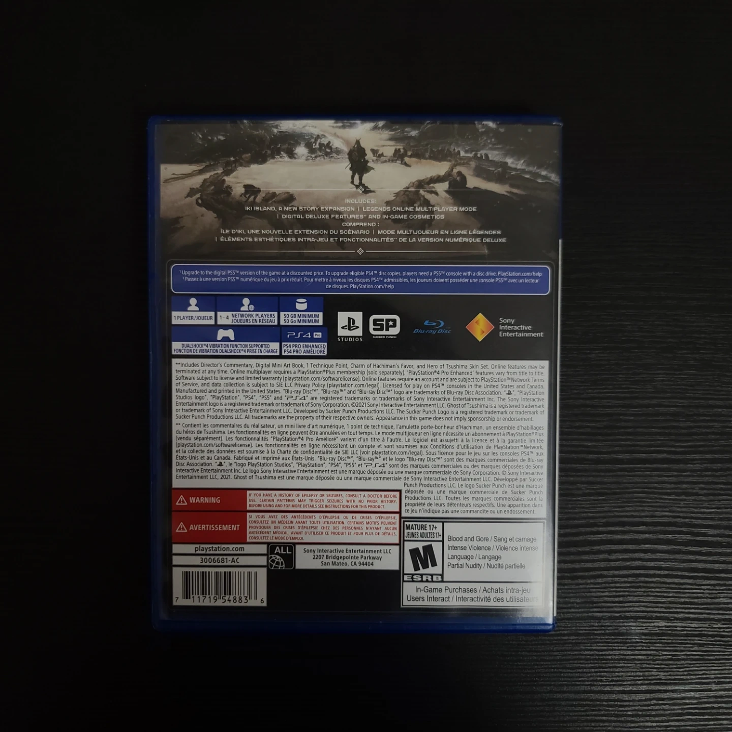 This is the Director's Cut of Ghost of Tsushima for PlayStation 4. It includes the Iki Island Story Expansion and Legends online multiplayer mode.