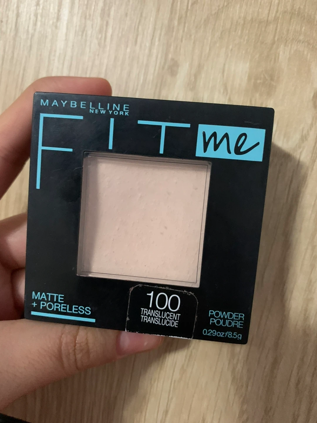 Maybelline Fit Me Matte + Poreless powder in shade 100 Translucent. It's 0.29 oz or 8.5g and includes a mirror and applicator. This powder is designed to mattify and minimize pores.