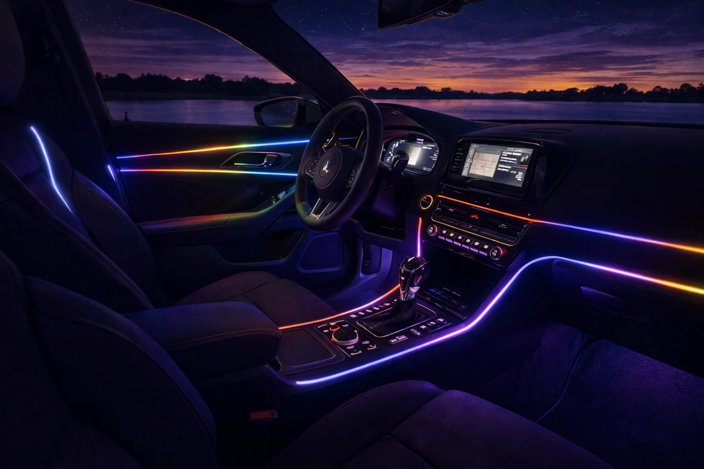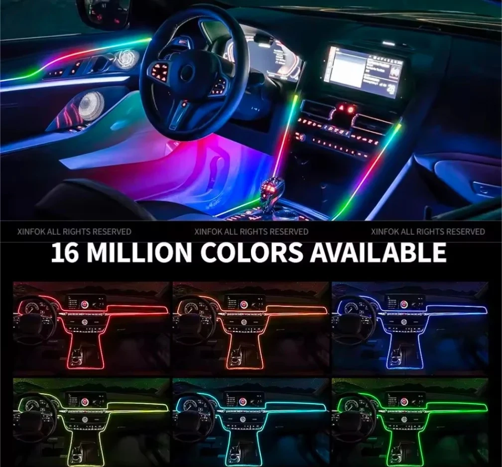 Experience advanced interior lighting with RGB Dreamcolor LED strip lighting featuring 612 LEDs for bright, sharp, and uniform illumination. Made from durable PMMA material, this lighting system delivers smooth color transitions and dynamic effects for a premium interior atmosphere.