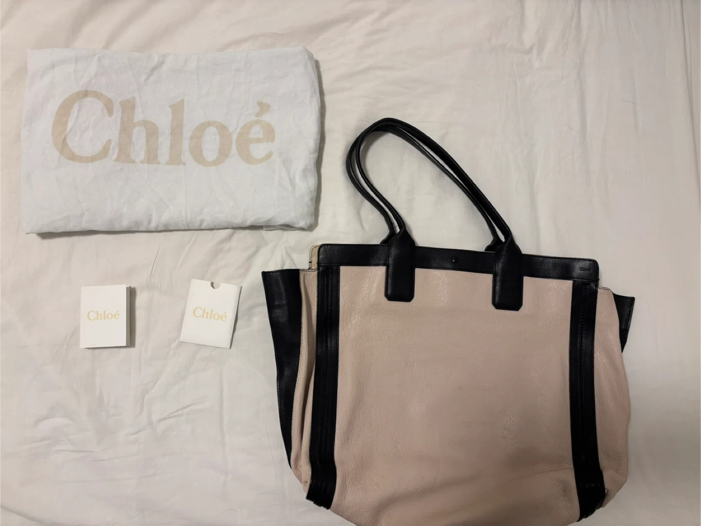 Chloé Tote Bag - Beige and Black Leather