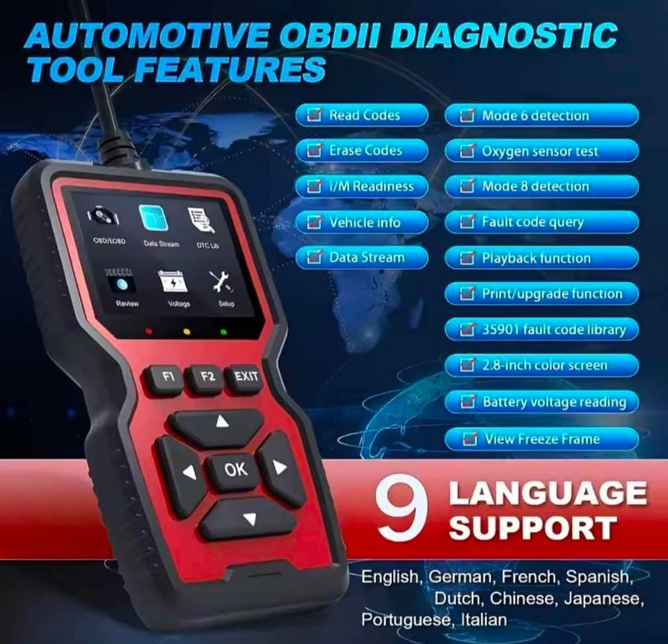 Brand New. Works with all 1996 and newer vehicles with OBD2 Protocol. Read diagnostic trouble codes (DTCs), Erase stored and pending fault codes, View freeze frame data, Check I/M readiness status, Retrieve vehicle information (VIN, etc.), Display live data stream, Perform Mode 6 on-board monitor test, Oxygen sensor test, Perform Mode 8 component/system test, Fault code query function, Fault code playback, Data stream playback, Battery voltage monitoring, Multi-language support, UI theme customization, Upgrade function (firmware/software), Print function for reports, Intelligent LED indicators. Pickup in Hamilton, ON.