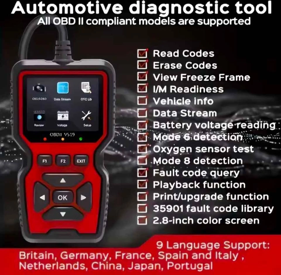 Brand New. Works with all 1996 and newer vehicles with OBD2 Protocol. Read diagnostic trouble codes (DTCs), Erase stored and pending fault codes, View freeze frame data, Check I/M readiness status, Retrieve vehicle information (VIN, etc.), Display live data stream, Perform Mode 6 on-board monitor test, Oxygen sensor test, Perform Mode 8 component/system test, Fault code query function, Fault code playback, Data stream playback, Battery voltage monitoring, Multi-language support, UI theme customization, Upgrade function (firmware/software), Print function for reports, Intelligent LED indicators. Pickup in Hamilton, ON.