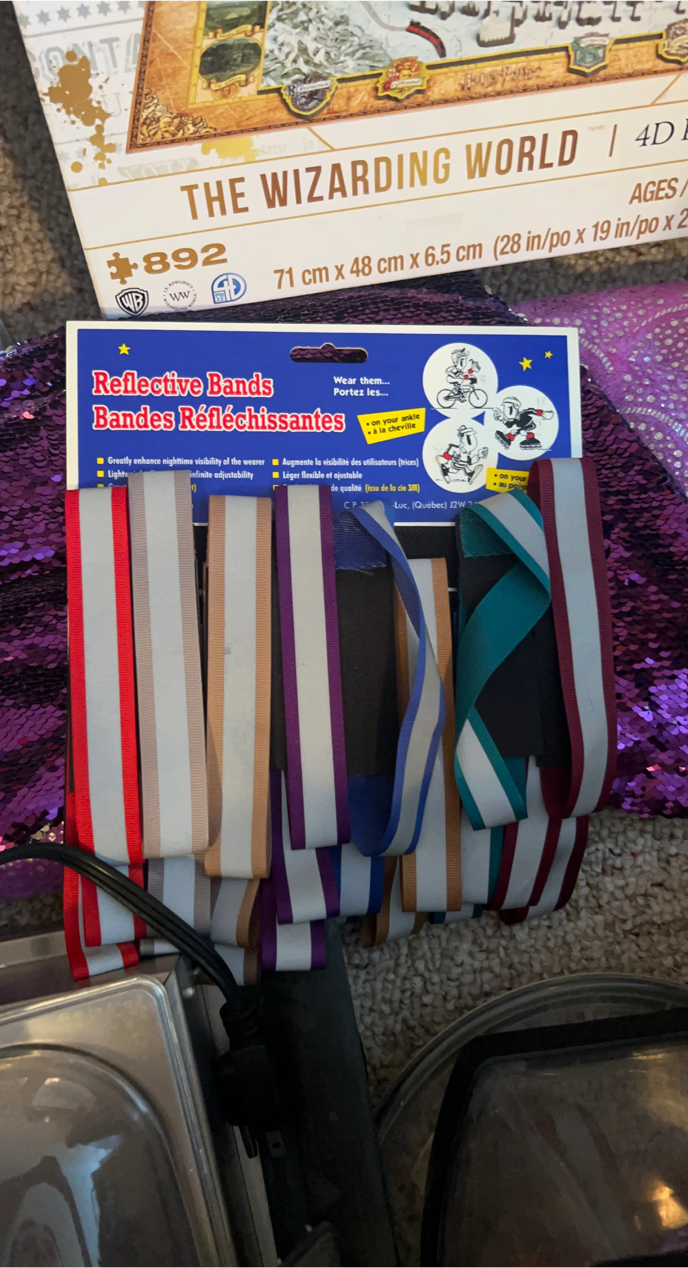 These reflective bands come in various colours. They greatly enhance night time visibility. The bands are lightweight, flexible, and adjustable. Use them on your ankle or wrist for added safety!