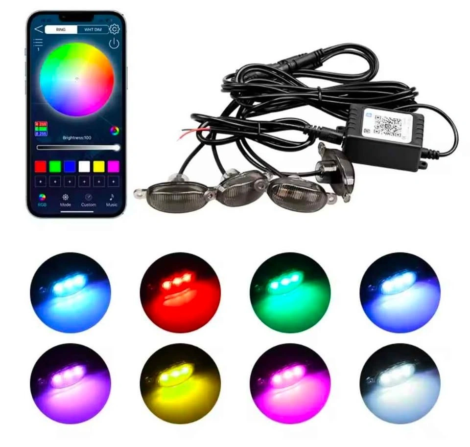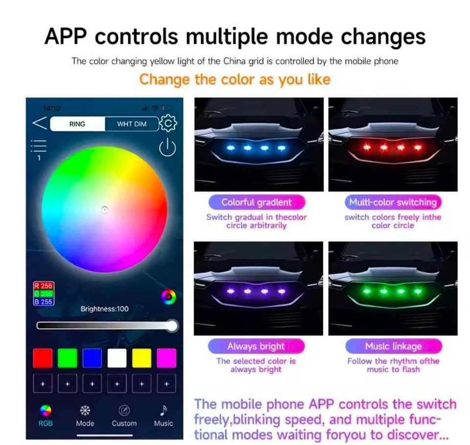 4pcs RGB Car Front Grille Lighting APP Control 12V