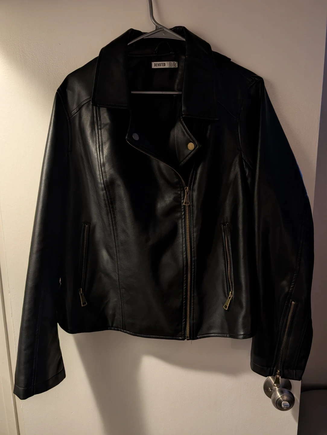 Buy & SellDEVOTED Black Faux Leather Moto JacketDEVOTED Black Faux Leather Moto Jacket$40DEVOTED black faux leather moto jacket. It's a size XL. Features zip pockets and front zipper closure.ConditionNewSizeXlWHERE TO MEETestación GlencairnView MapSELLERLidiaLawrence56873 reviews0 chats·0 favorites·24 viewsSEND CHAT TO SELLERHi Lidia! I’m interested in your listing.Hi Lidia! I’m interested in your listing.Get the Karrot app to chatSign In to chat