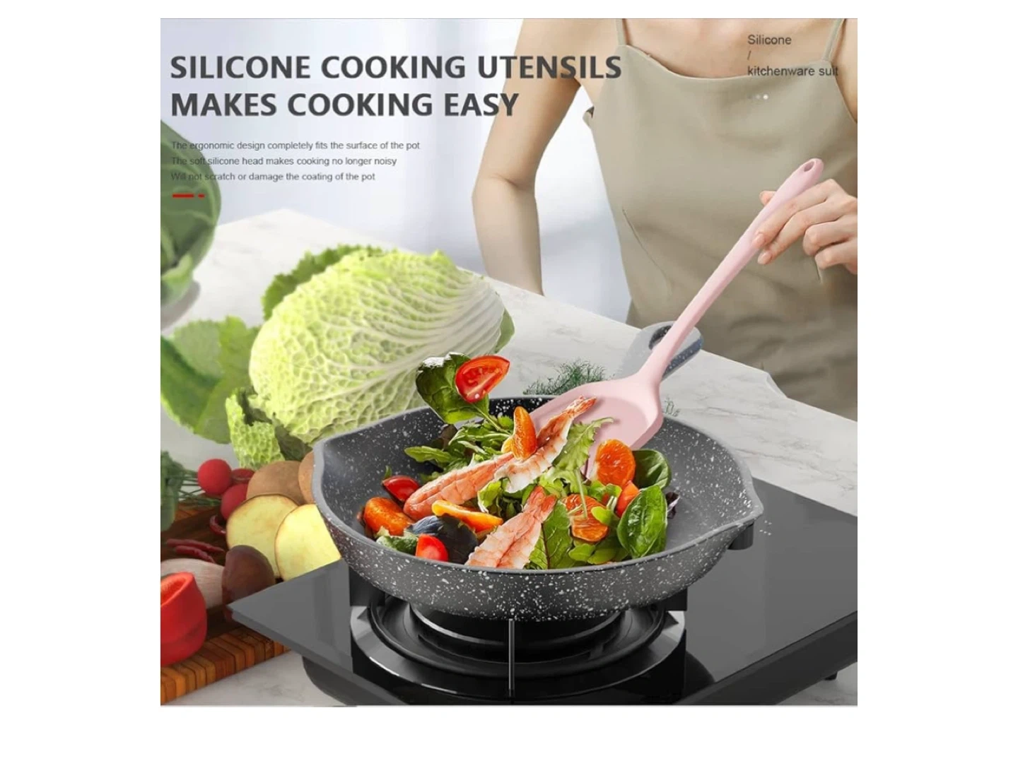 This 15-piece kitchen utensil set comes in a lovely pink colour. It's made from food-grade silicone and is heat resistant, non-stick, and dishwasher safe. This set includes a variety of tools for all your cooking needs!