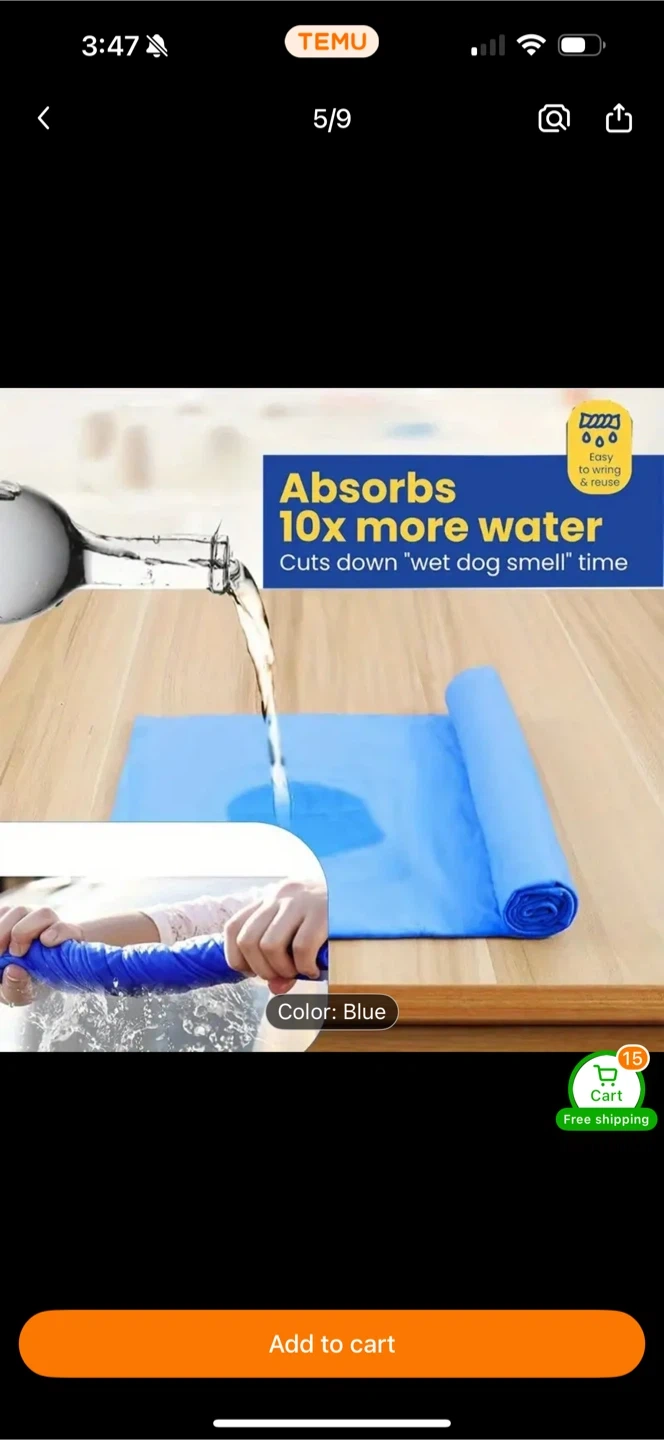 This towel absorbs 10x more water and is made of PVA material for high absorbency. It's fast drying and reusable. Suitable for large, medium, and small dogs and cats.